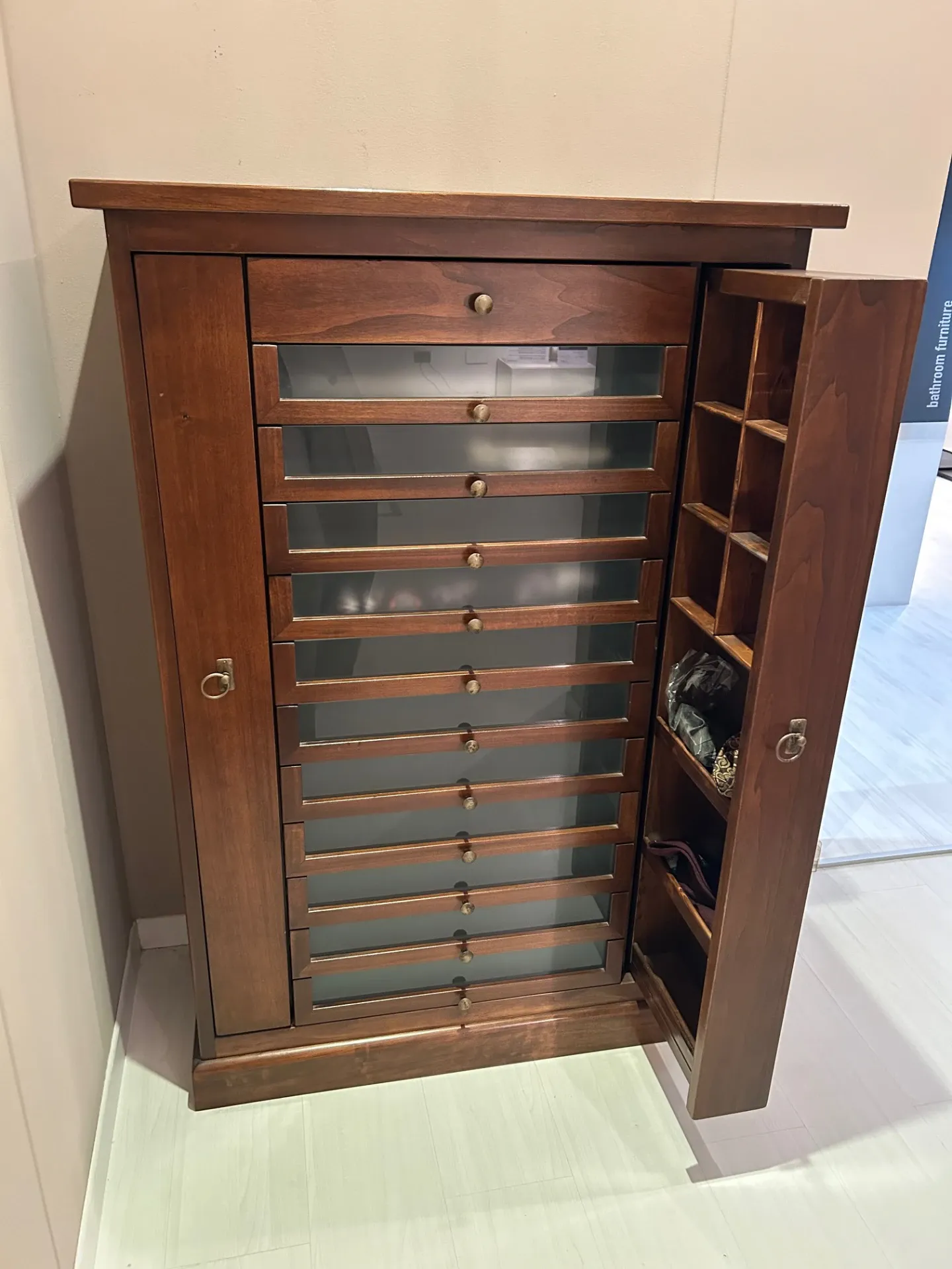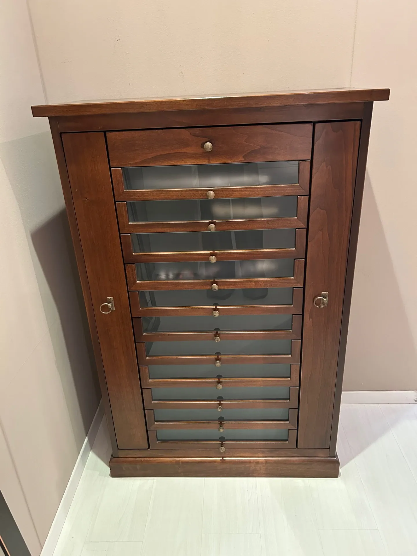 CASSETTIERA MASSELLO NOCE CON CASSETTI VETRO