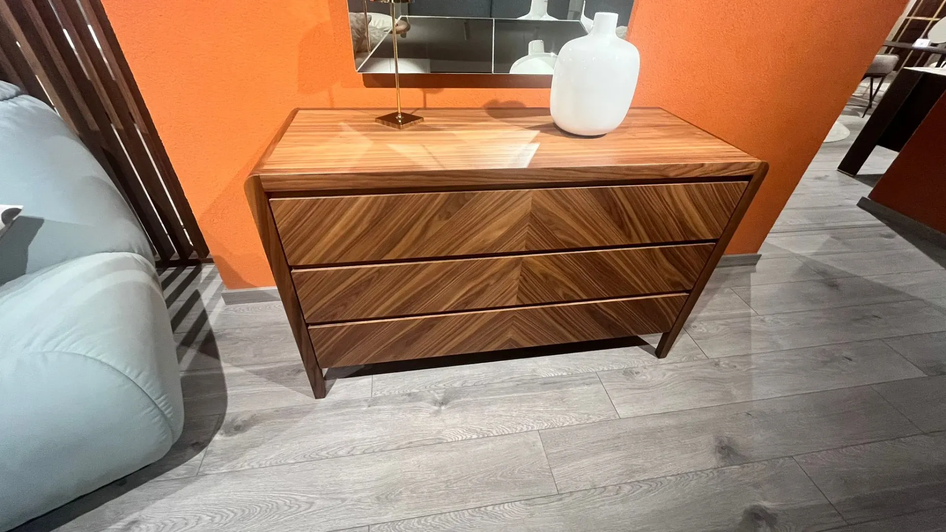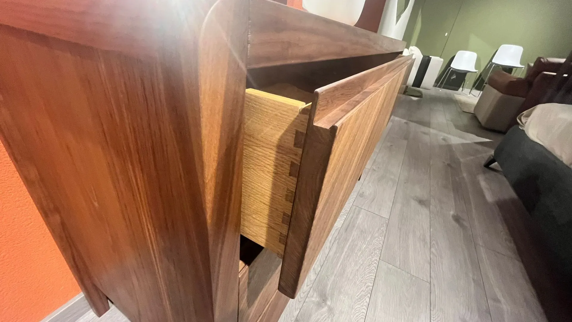 Si caratterizza per il design compatto, ammorbidito dagli angoli arrotondati che caratterizzano la struttura. Il tocco di classe in più sono i frontali spinati, che contribuiscono a definire l'estetica contemporanea dei mobili. I cassetti, ampi e perfettamente scorrevoli, sono sinonimo di comfort e funzionalità.