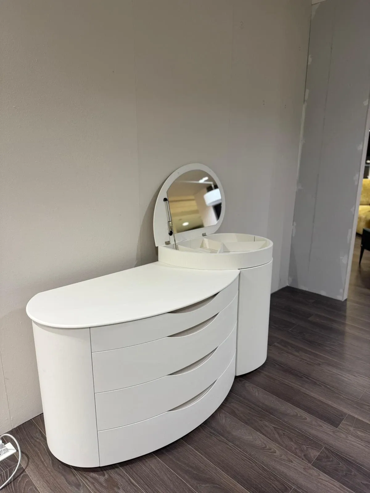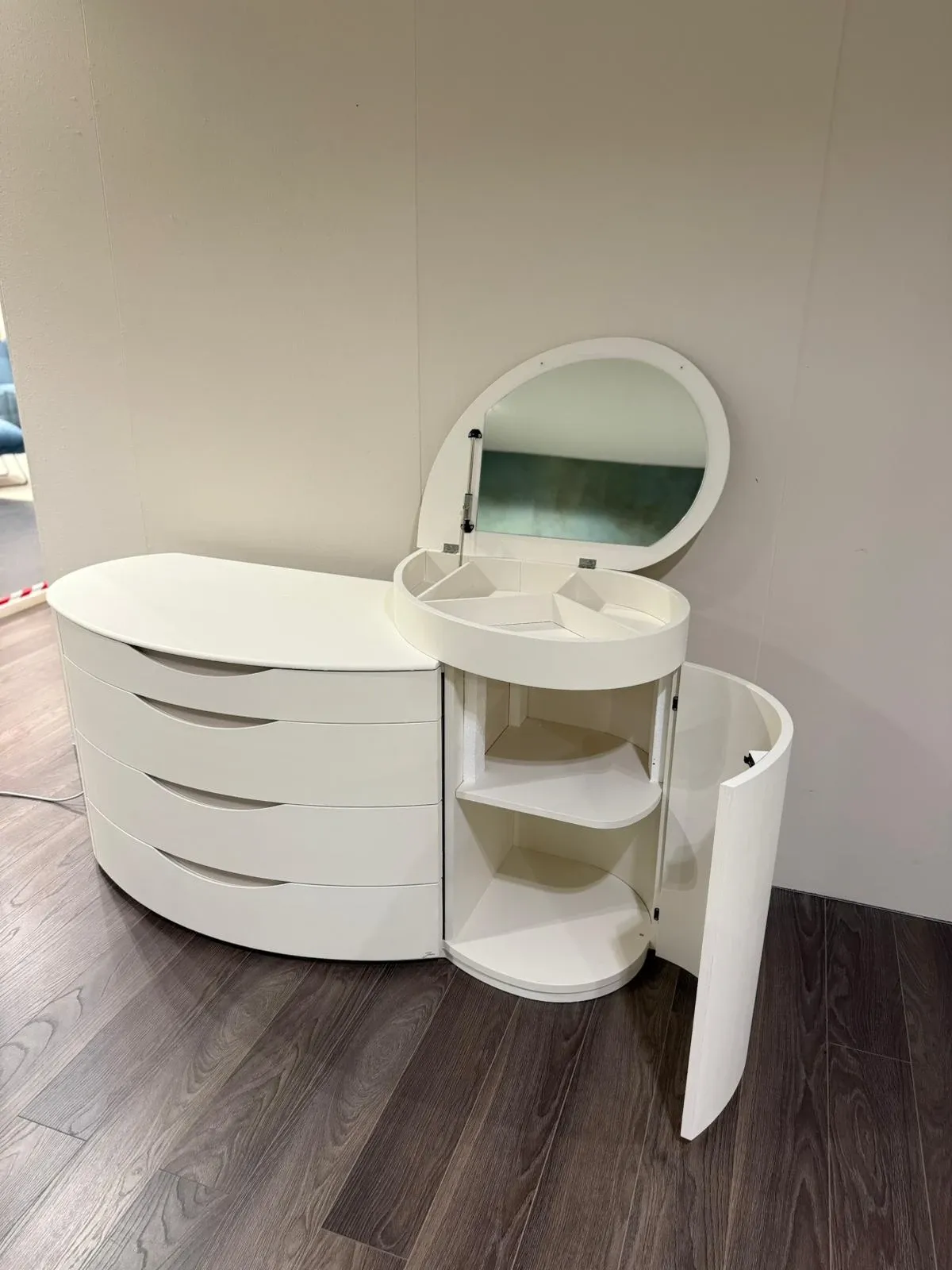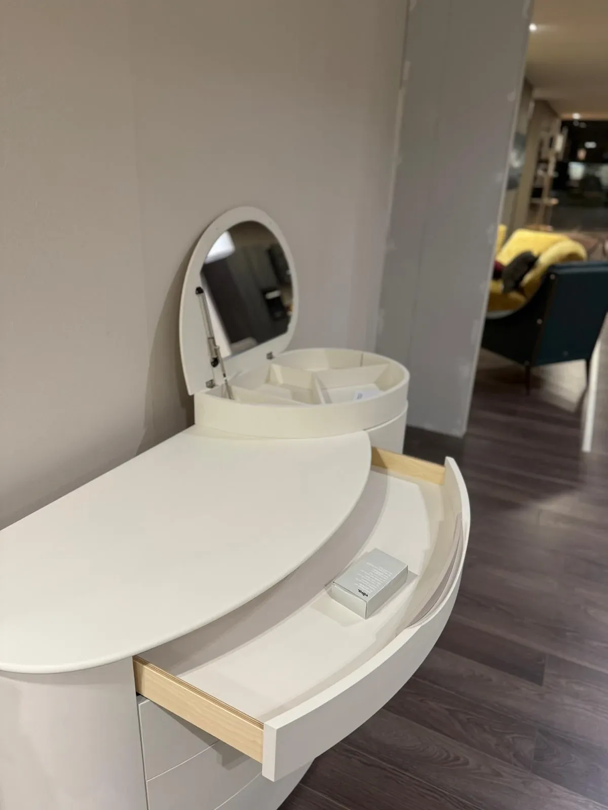 Il cassettone Marilyn è un prodotto iconico di Fazzini, espressione di grande maestria artigianale e creatività. La struttura è composta da pannelli di multistrato curvati, così come i frontali, caratterizzati da una maniglia centrale ricavata attraverso la fresatura degli stessi. Completano la lavorazione il dettaglio dell inserto personalizzabile. Il cassettone Marilyn è un ottimo sistema contenitivo, con spaziosi cassetti ad estrazione totale dotati di chiusura ammortizzata, antina push e ribalta portagioie con specchio.