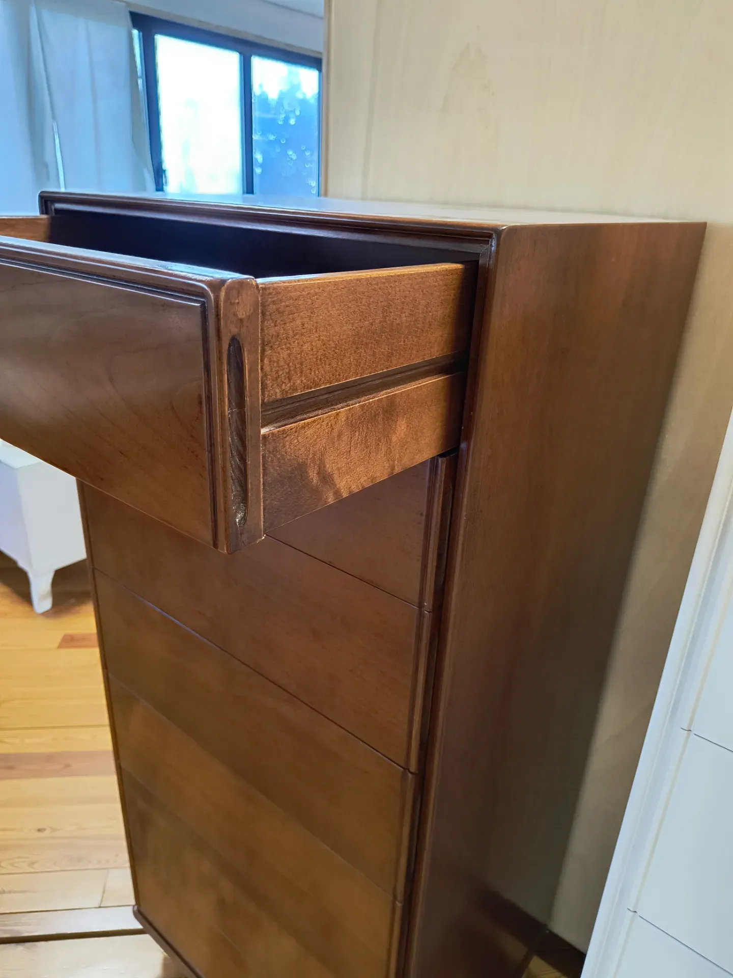 Cassettiera artigianale a 7 cassetti in legno di ciliegio Design contemporaneo con dettagli in foglia oro
