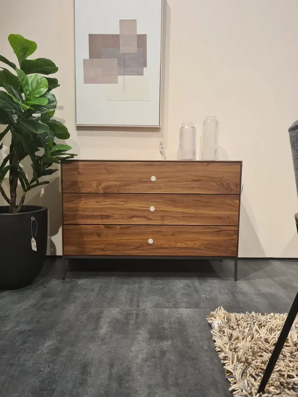 M0400013MM41_Vedrana Cassettiera Vedrana 3 cassetti impiallacciato noce e gambe in acciaio nero 110 x 75 cm