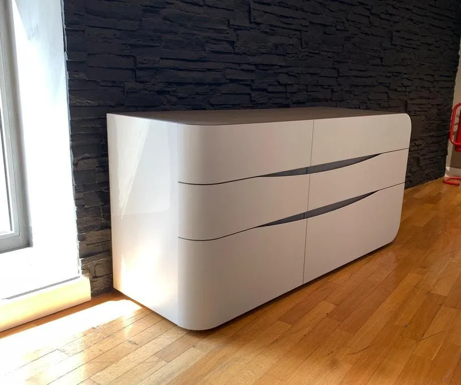 Dimensioni : L 60 x P 45 cm ; H 46,5 cm.Frontali laccato opaco colore grigio chiaro.
