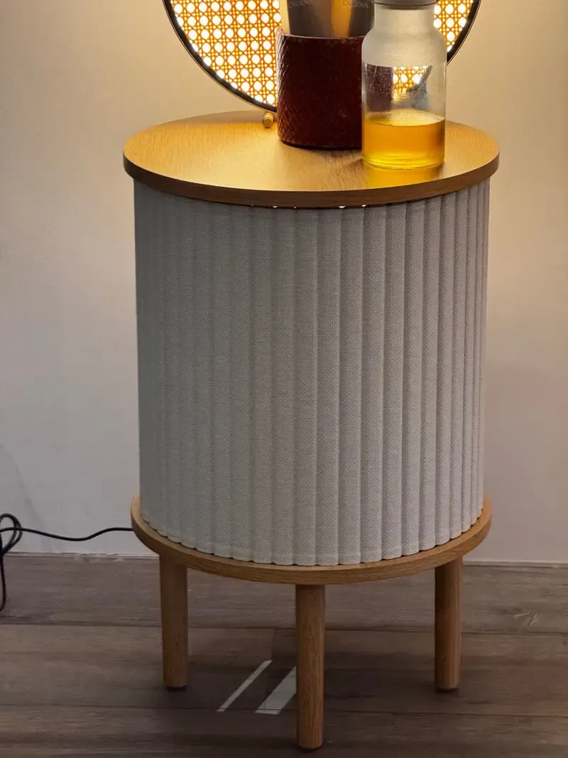 Materiali: rovere naturale e tessuto plissé