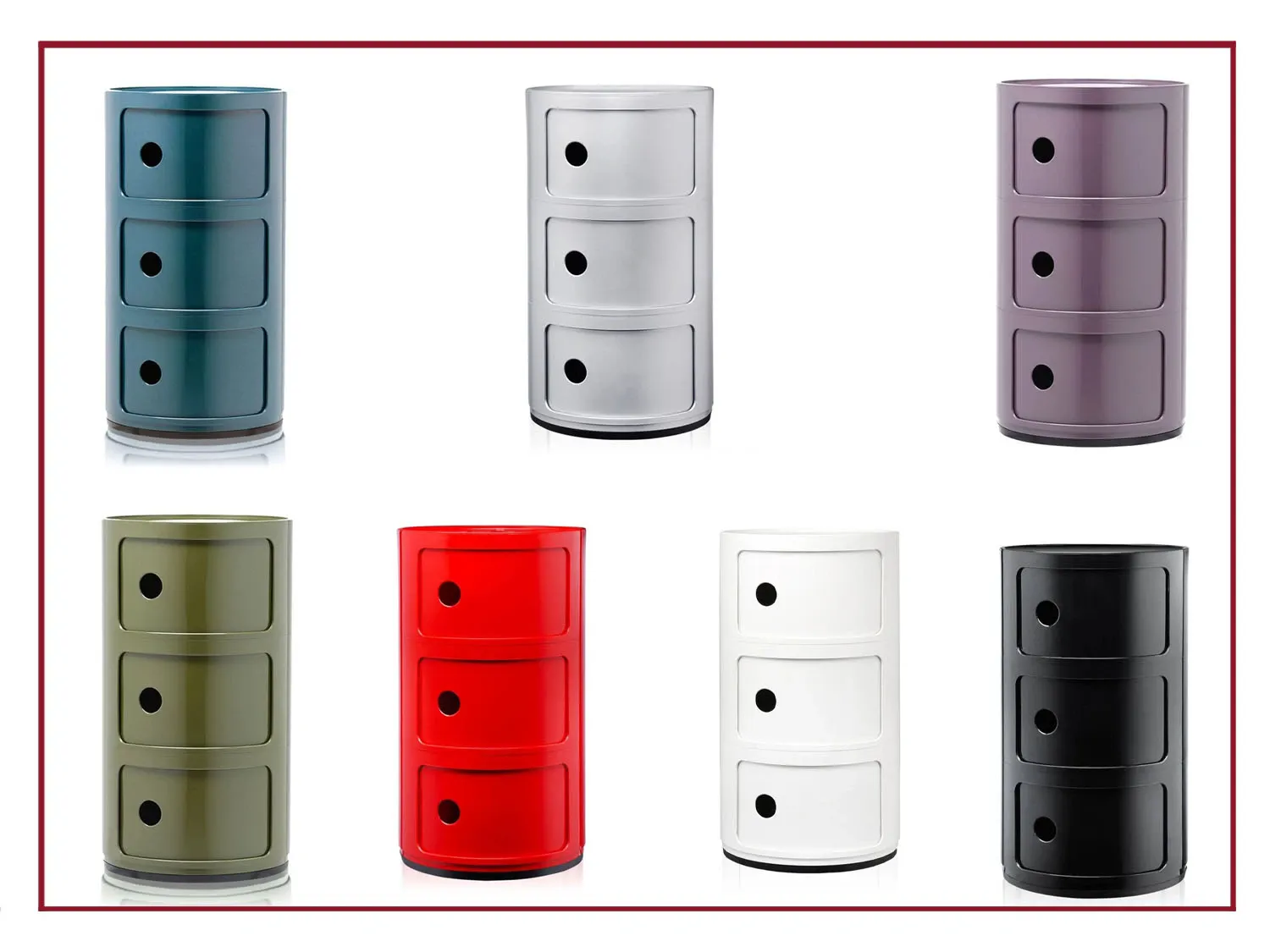 Realizzati in ABS resistente e facile da pulire, si presentano in diverse altezze e in una palette di finiture lucide che li rende immediatamente riconoscibili. La loro natura modulare permette di inserirli in camera da letto come comodini, in bagno come contenitori discreti, in soggiorno come piccoli elementi d appoggio o persino in ufficio, mantenendo sempre quell equilibrio tra funzionalità e stile che li ha resi un icona del design italiano.
