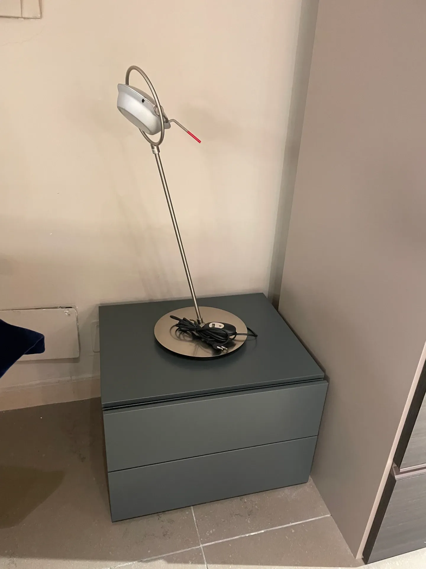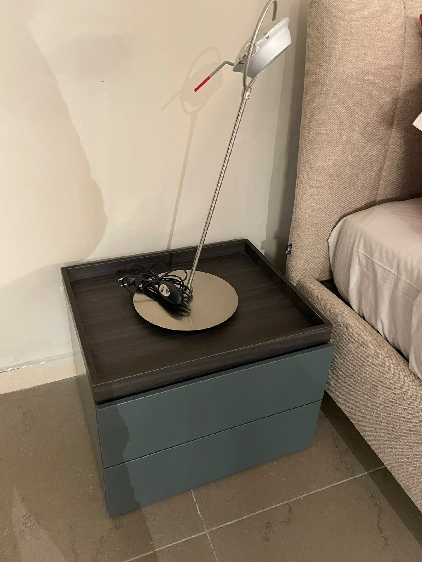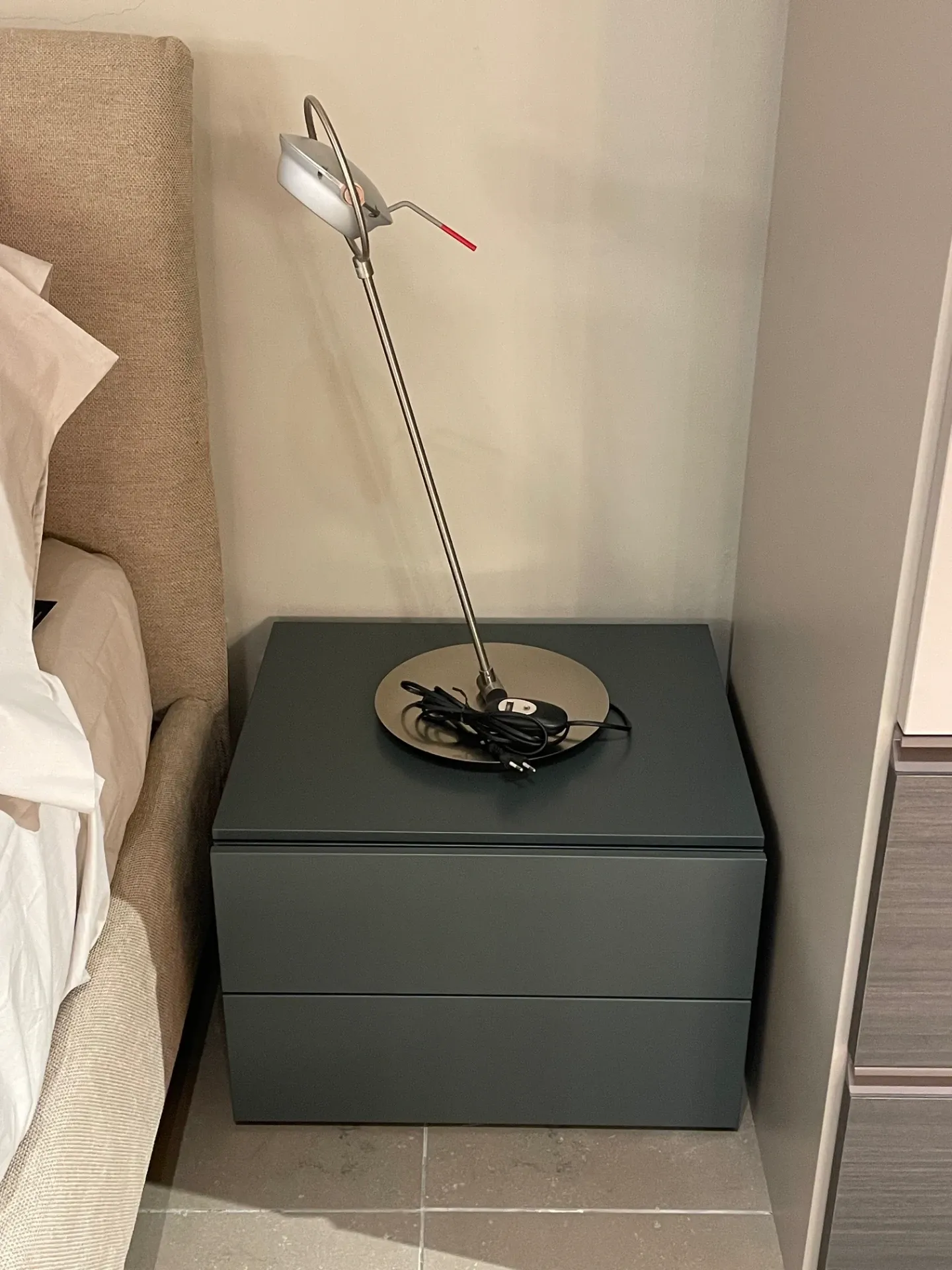 Comodino in legno laccato verde ginepro.