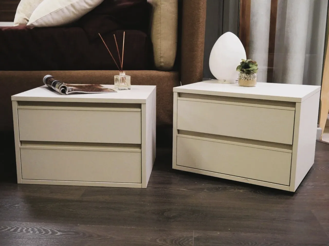 Night Light Collection Comodino a 2 cassetti e settimanale a 6 cassetti, in melaminico bianco con maniglie laccate in tinta.