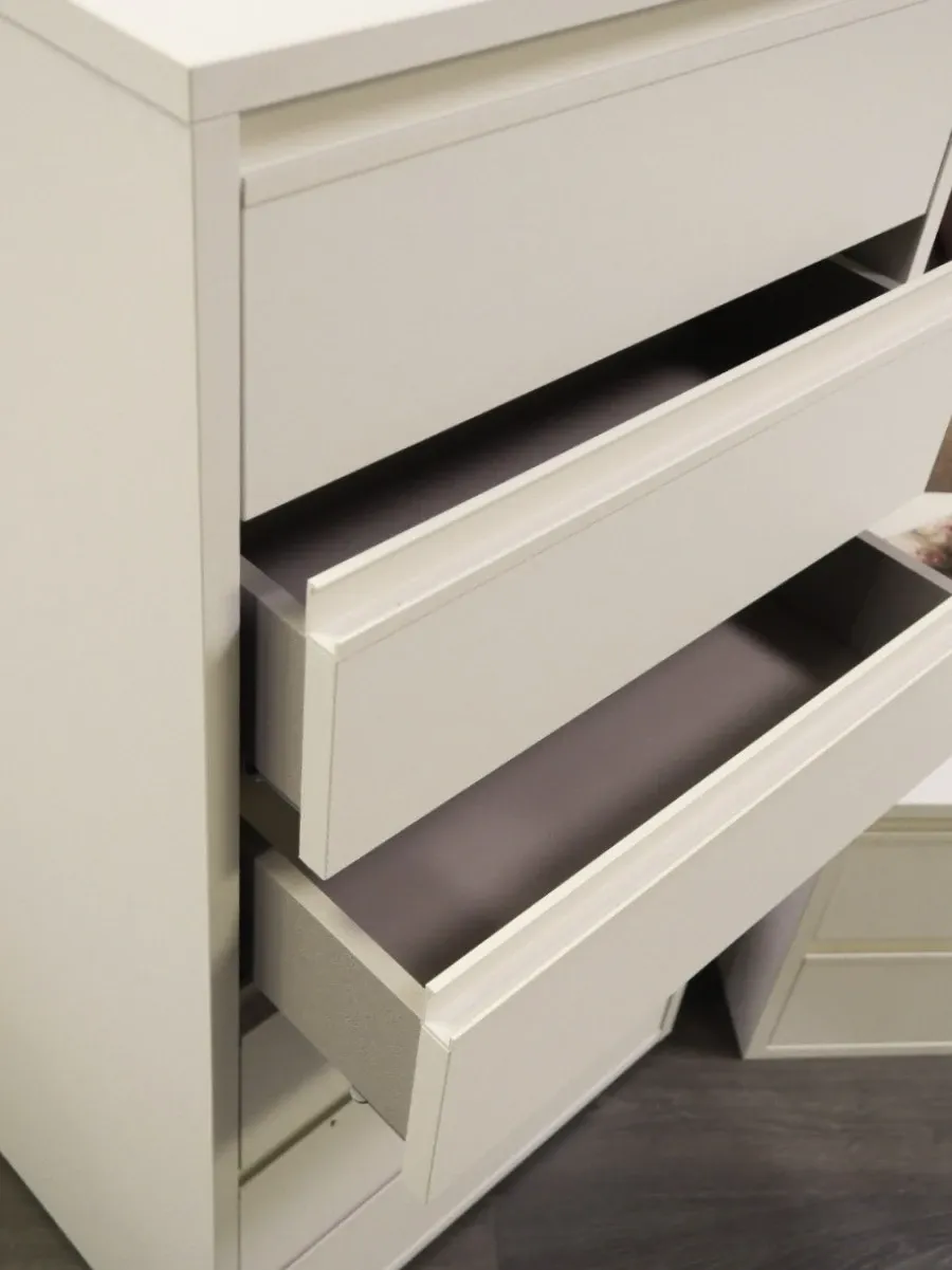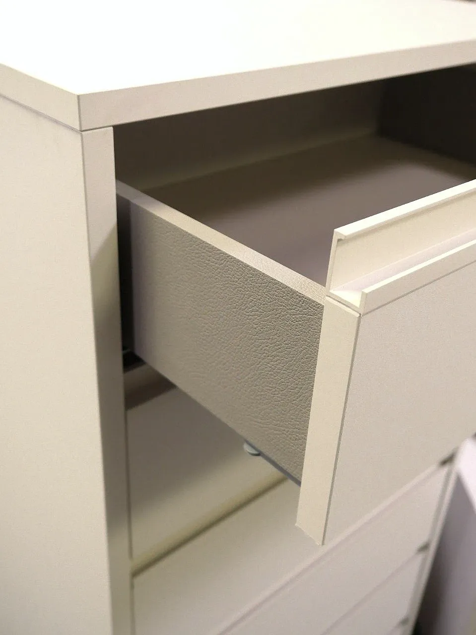 Si tratta di prodotti dal design moderno ed essenziale, dal carattere neutrale per adattarsi a qualsiasi tipologia di arredamento; dal minimal allo scandinavo più eclettico. Svolgono la loro funzione in armonia con lo spazio e con la massima funzionalità. Cassetti con gola e ferramenta rallentante garantiscono la privacy fondamentale per le nostre case.