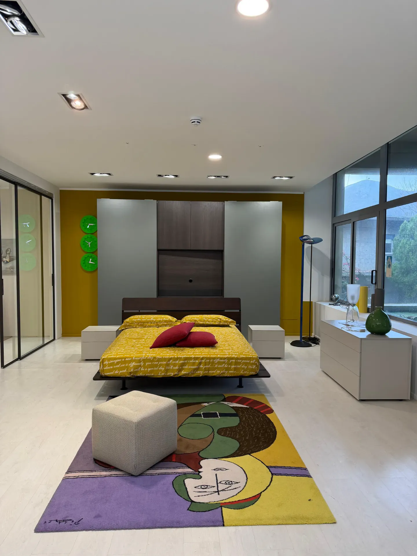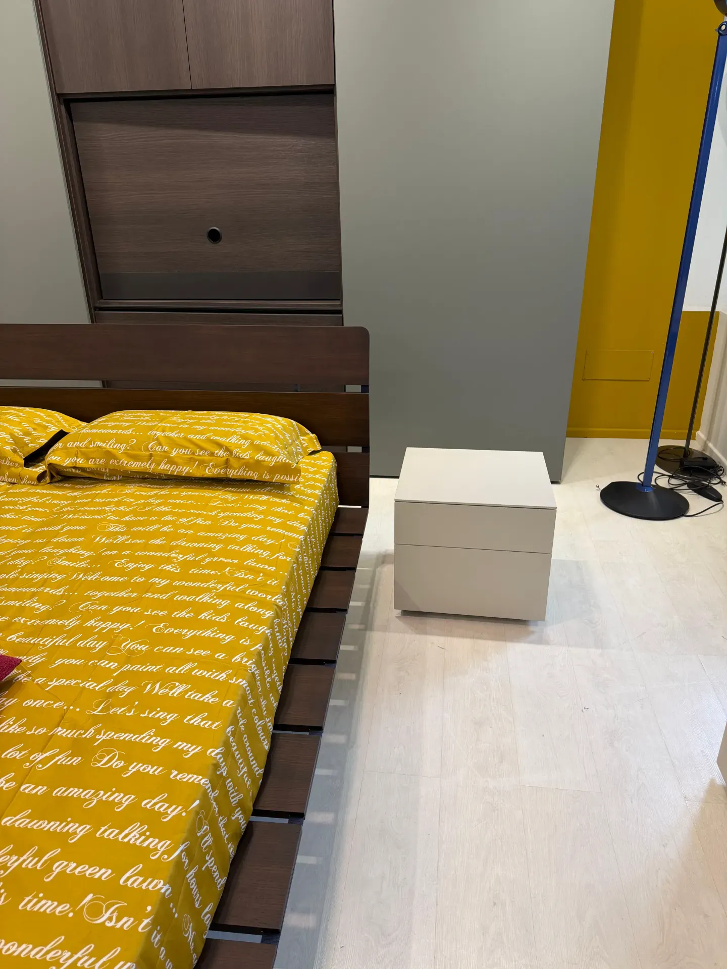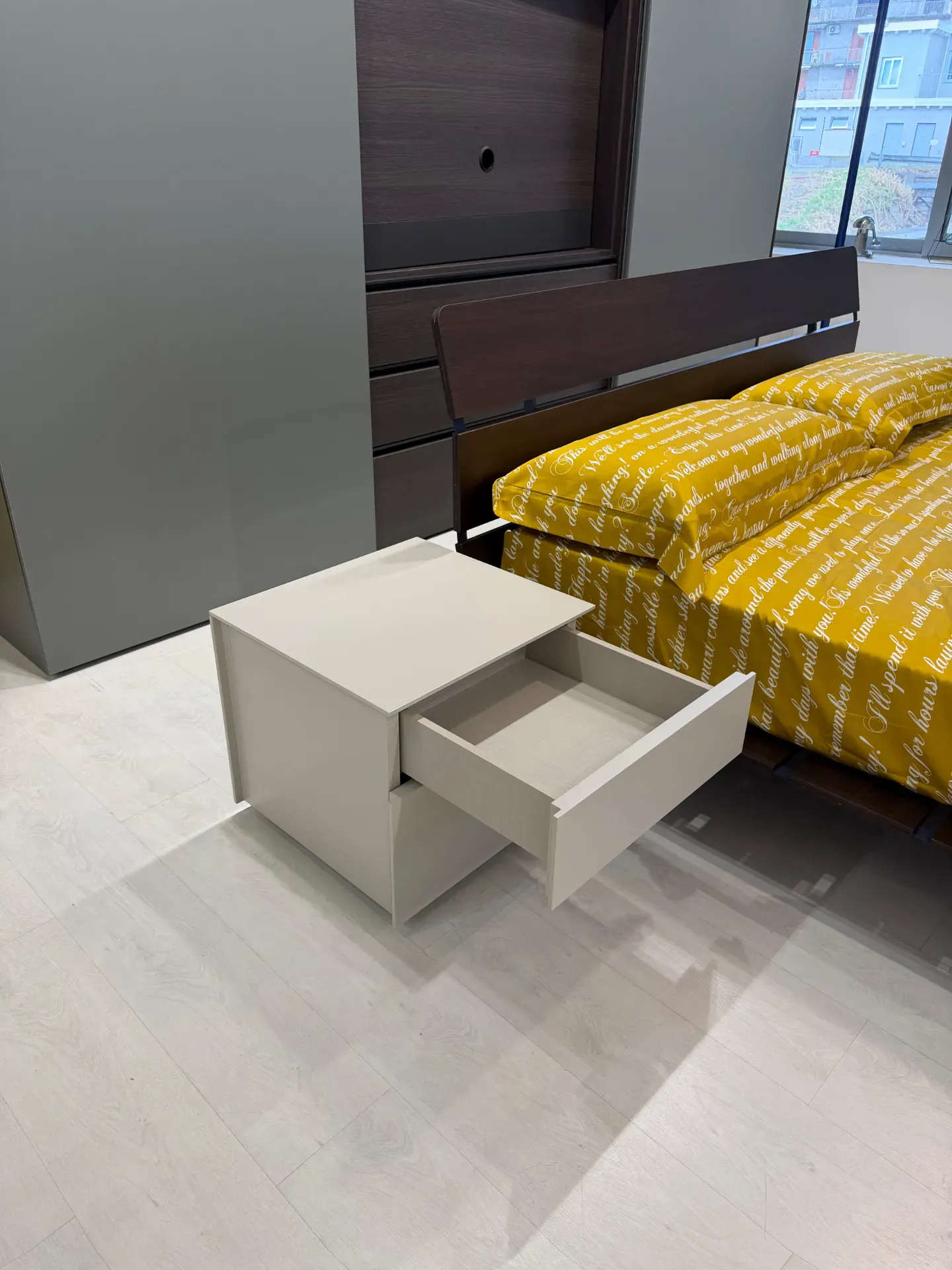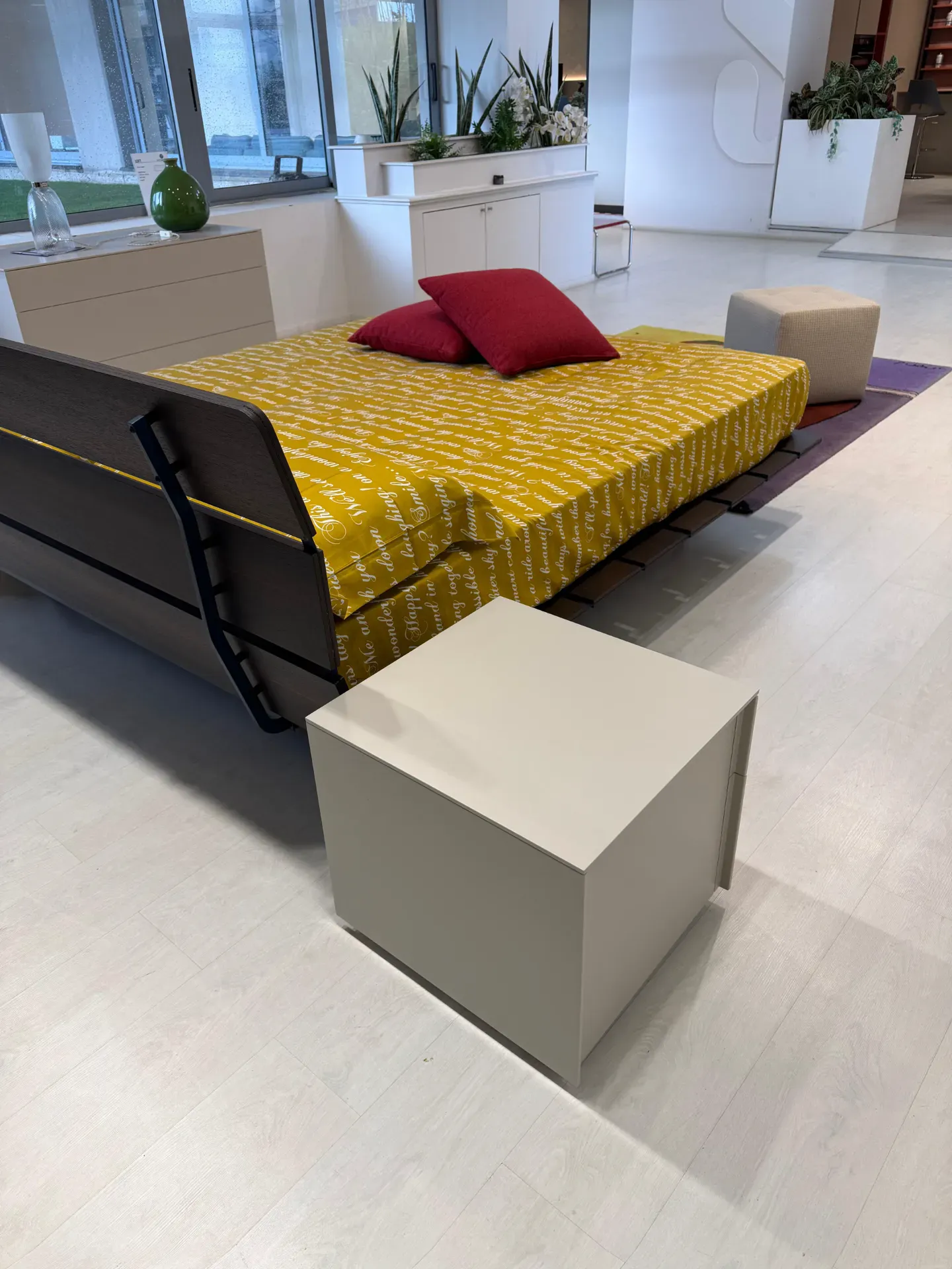Forme decise e materiali di qualità connotano tutti i comodini Flou: scopri il modello Juta in laccato opaco qui presente e completa la tua zona notte.