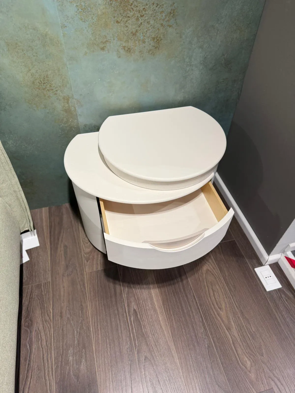 Il trittico Marilyn Glamour è un prodotto iconico di Fazzini, espressione di grande maestria artigianale e creatività. La struttura è composta da pannelli di multistrato curvati, così come i frontali, caratterizzati da una maniglia centrale ricavata attraverso la fresatura degli stessi. Completano la lavorazione il dettaglio dell inserto personalizzabile. Il comodino Marilyn si presenta con tre cassetti dotati di chiusura ammortizzata e pratico vassoio estraibile.