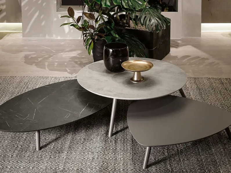 Dimensioni versione rotonda: D.95 x H.31 cm Dimensioni versione triangolare: L.82.7 x P.81 x H.18 cm Dimensioni versione ovale: L.120 x P.70 x H.18 cm