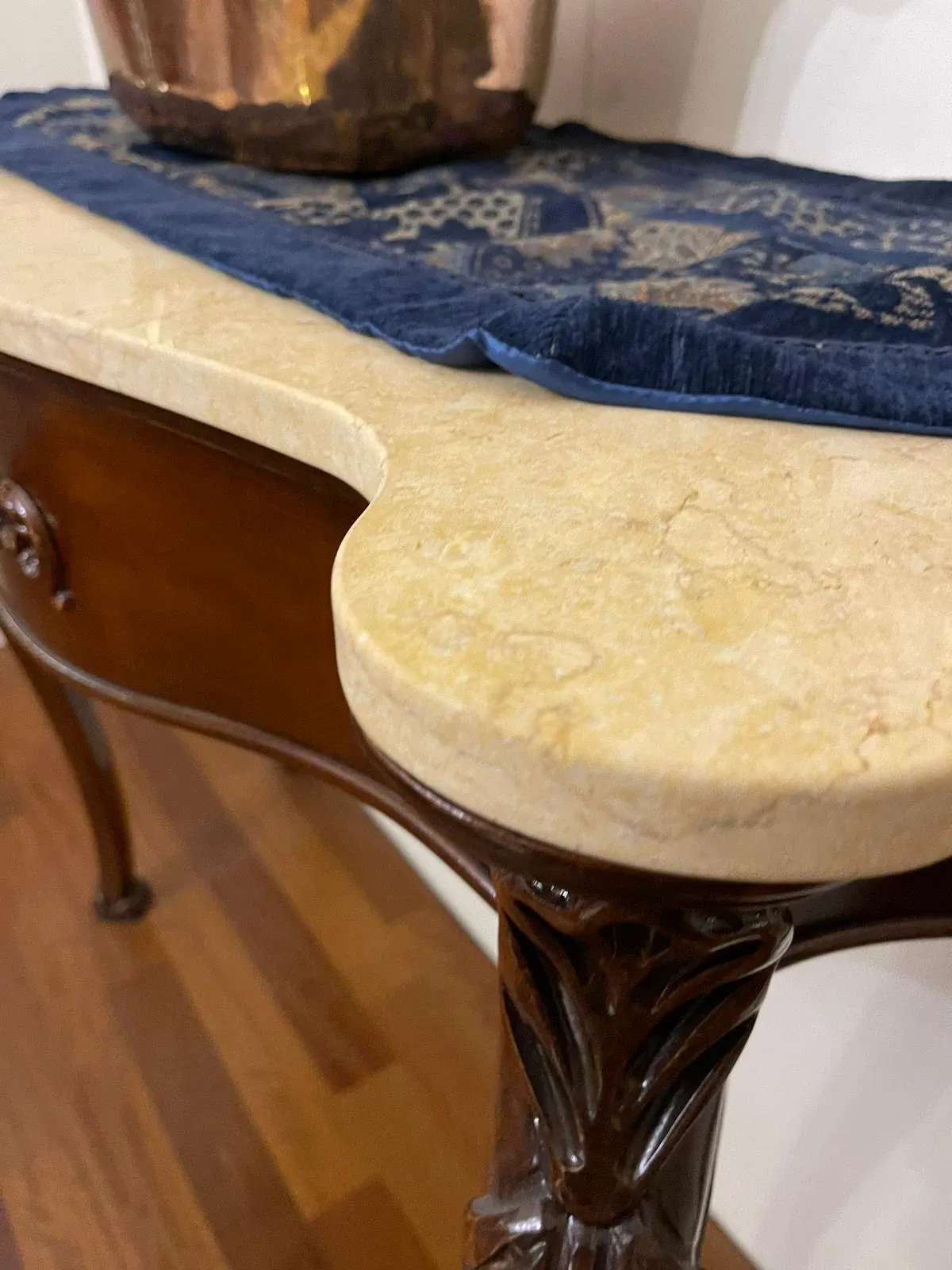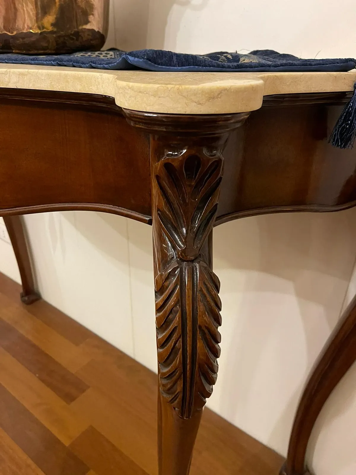 CONSOLLE IN LEGNO INTAGLIATA FINITURA NOCE CON TOP MARMO L120