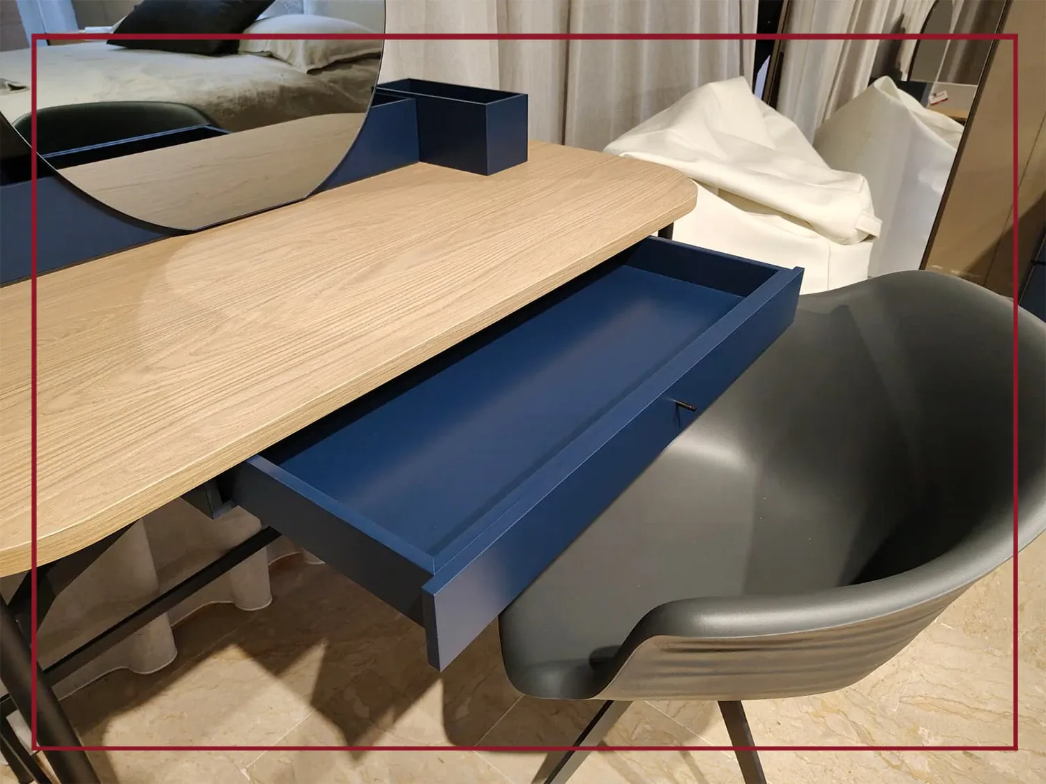 Il piano d appoggio, ampio e ben proporzionato, è perfetto per ospitare oggetti preziosi, cosmetici o accessori, mentre i vani contenitivi nascosti mantengono l ordine con discrezione.