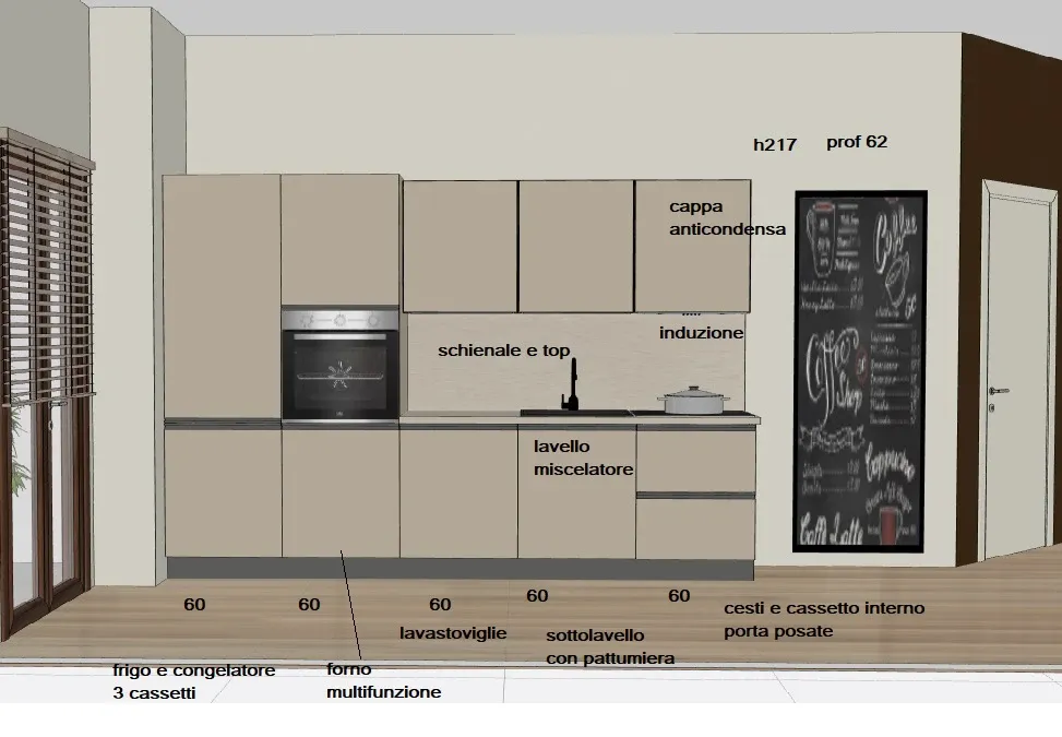 gli elementi della cucina POSSONO essere spostati in base agli impianti del cliente