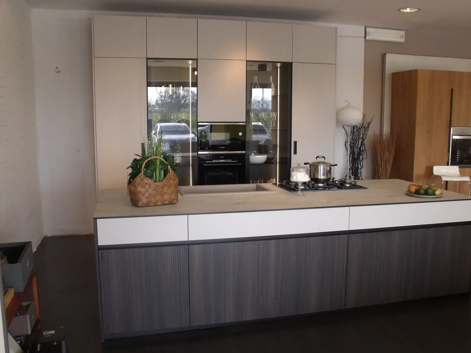 Arredo3 ha scelto di realizzare in laccate opaco la cucina Kali ora scontata, materiale resistente negli anni ma anche esteticamente apprezzabile e raffinato.