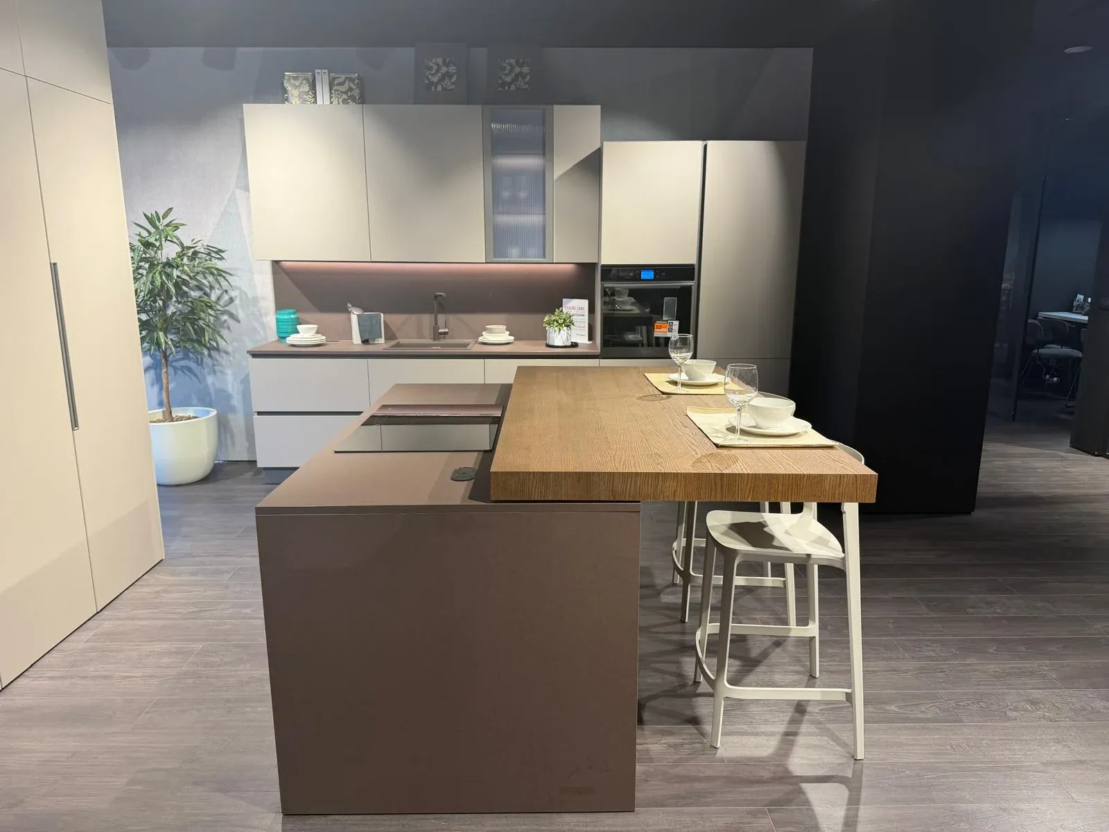 Scopri la cucina Immagina Neck Matheria di Lube, dove eleganza e funzionalità si incontrano in un design contemporaneo. Protagonista è l isola centrale con piano snack traslante, perfetta per vivere la cucina in modo dinamico e conviviale. Le colonne polifunzionali offrono massima organizzazione, mentre il top in laminato Matheria garantisce resistenza e stile materico. Completa di elettrodomestici Whirlpool con piano a induzione e moderna cappa a soffitto, per prestazioni elevate e un estetica pulita.. Design contemporaneo e raffinato. Isola con piano snack traslante super funzionale. Ampie colonne contenitive. Materiali resistenti ed eleganti. Elettrodomestici inclusi. Disponibilità immediata. Una soluzione completa, elegante e subito disponibile per rinnovare la tua casa con qualità e design.