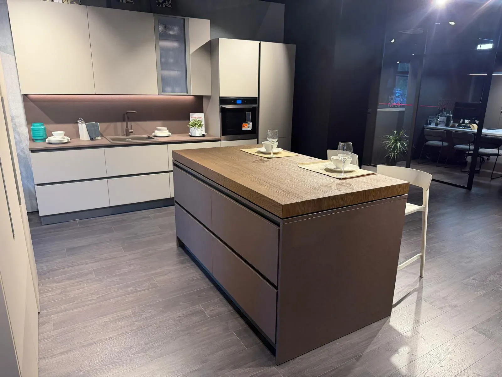 La cucina Immagina neck mathera in laminato materico è esemplare della qualità che la nostra dedizione garantisce ai nostri clienti, in quanto resistente nel tempo e di forte impatto.