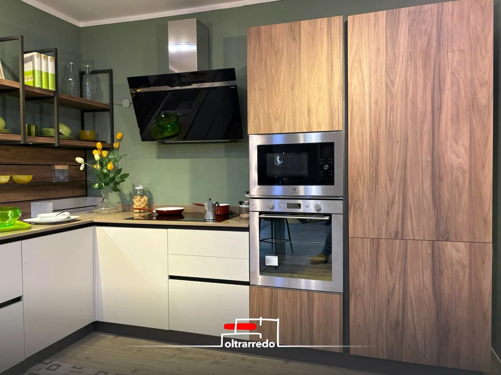 - La cucina è soggetta all'azione di vapore e odori, in particolare quando si vogliono preparare piatti complicati, difatti Arredo3 kalì prevede una cappa a parete.