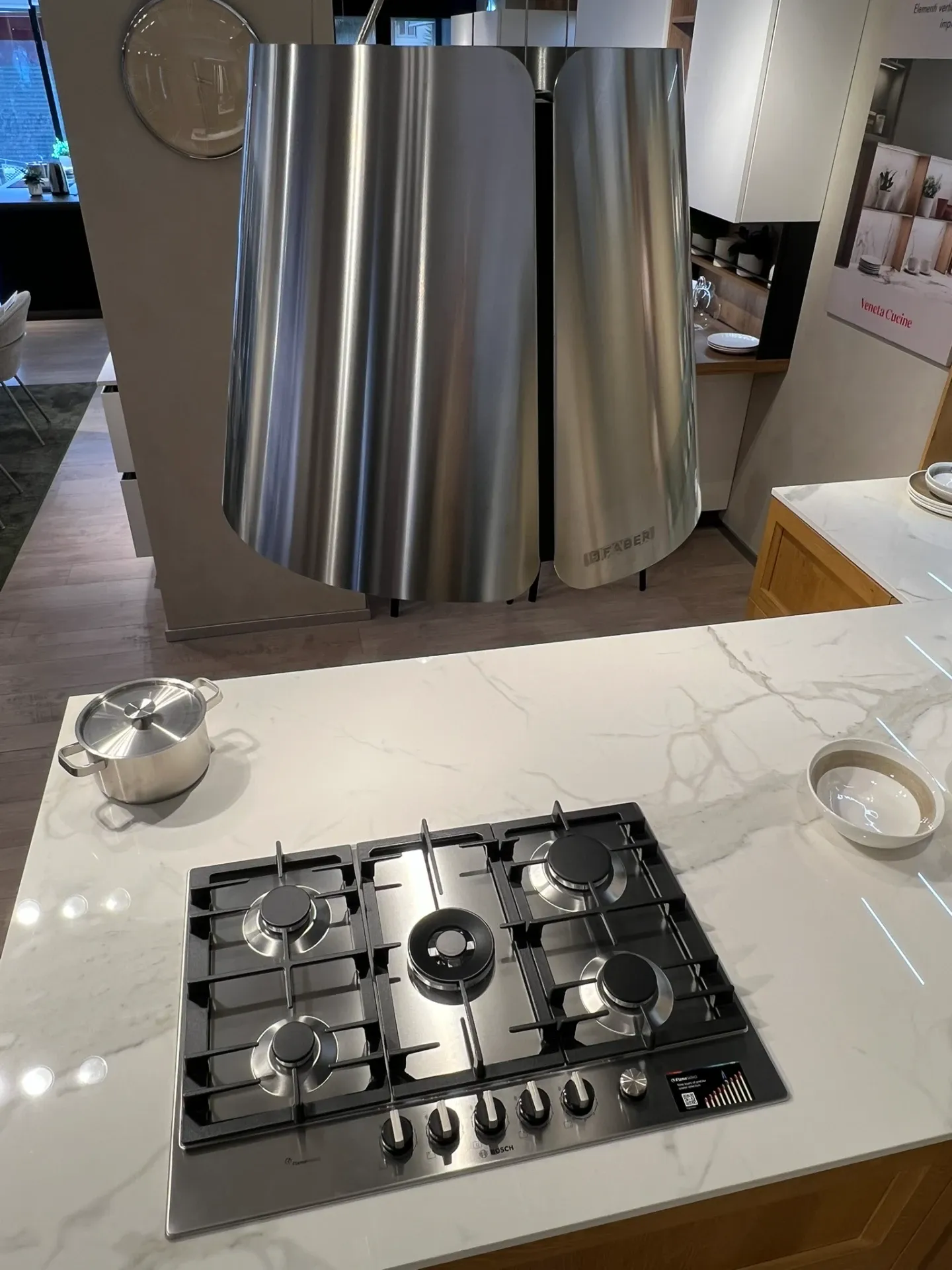 - Distribuzione uniforme del calore sotto il pentolame e cottura ideale sono i connotati principali del piano cottura a gas che abbiamo selezionato per questa cucina Veneta Cucine, adatto per agevolare le quotidiane attività che svolgiamo in cucina.