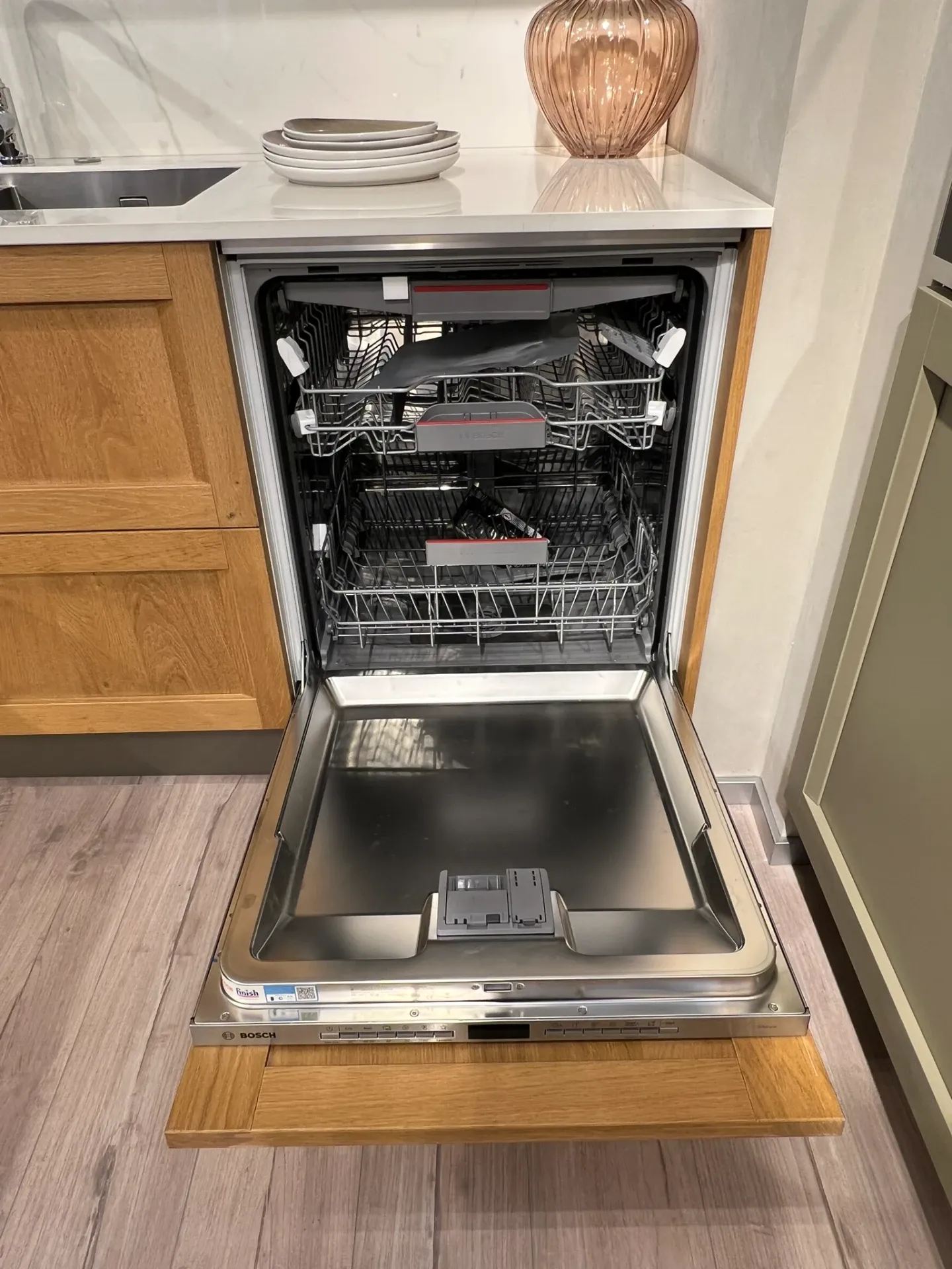 - Per merito delle caratteristiche eccellenti della lavastoviglie comandi a scomparsa disponibile in questa cucina Milano, la tua stoviglieria brillerà come nuova, assicurandoti una completa pulizia.
