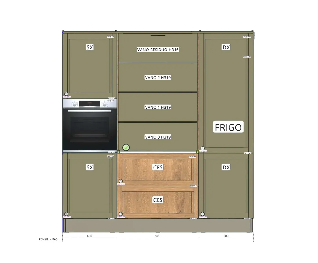 - Al fine di preparare le pietanze in modo corretto, è di primaria importanza la presenza di un forno multifunzione, incluso in questa cucina Milano.