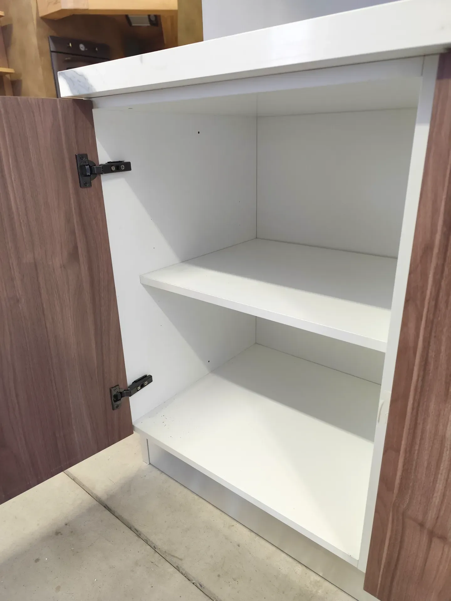 E' modulabile, ciò vuol dire che possiamo spostare TUTTI gli elementi in base alle vostre misure, grazie ad un top NUOVO in laminato incluso nel prezzo da tagliare e forare.