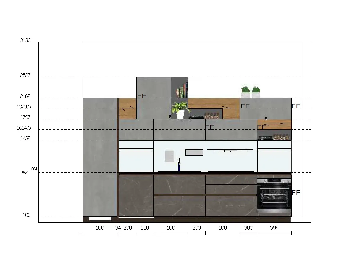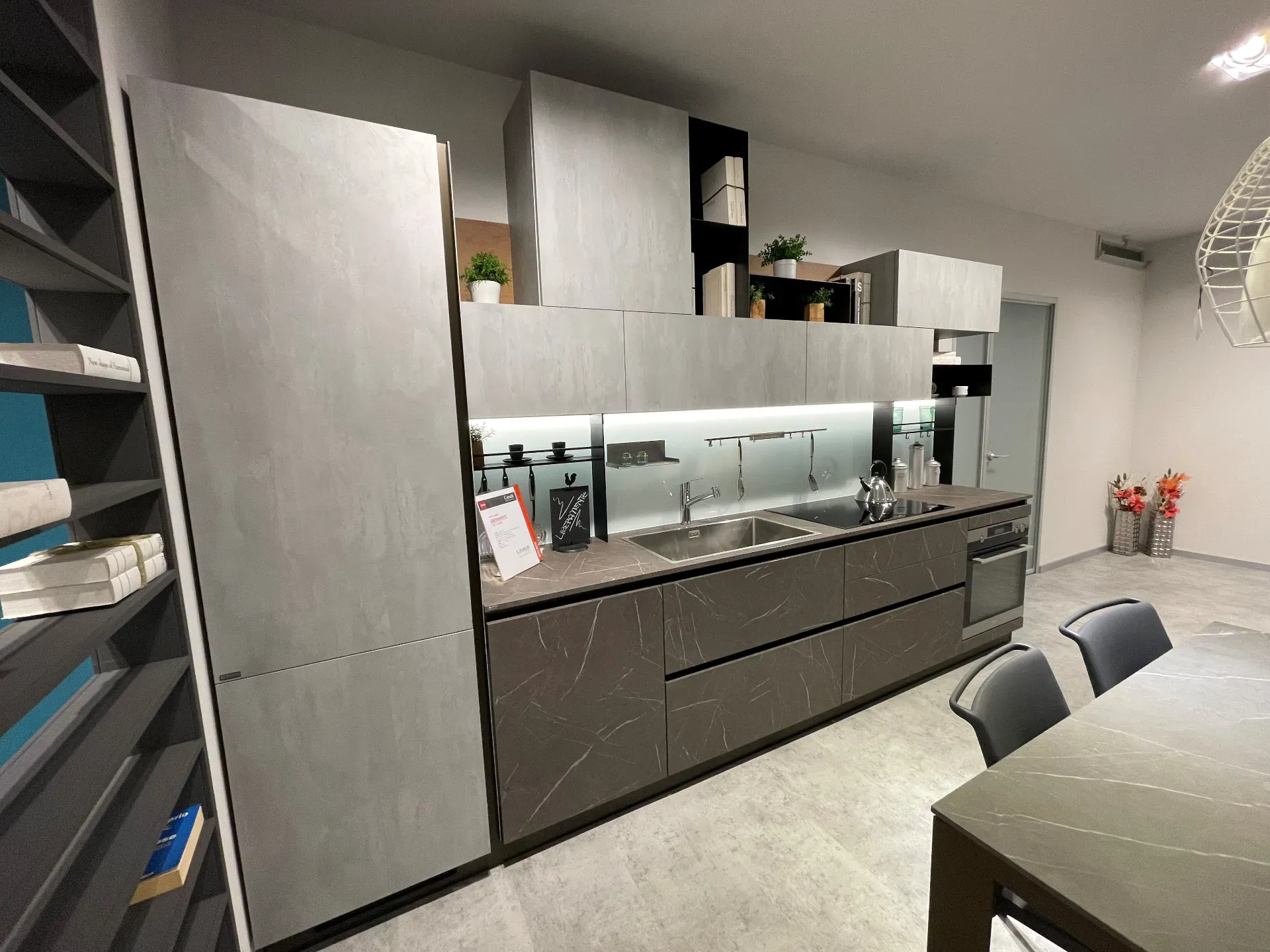 è una cucina moderna e di design, caratterizzata da linee essenziali, assenza di maniglie e grande libertà compositiva, perfetta per integrare cucina e living. Il modello offre un ampia gamma di finiture (laminati, laccati, vetro, gres) e si distingue per moduli a giorno, basi con gola e soluzioni versatili