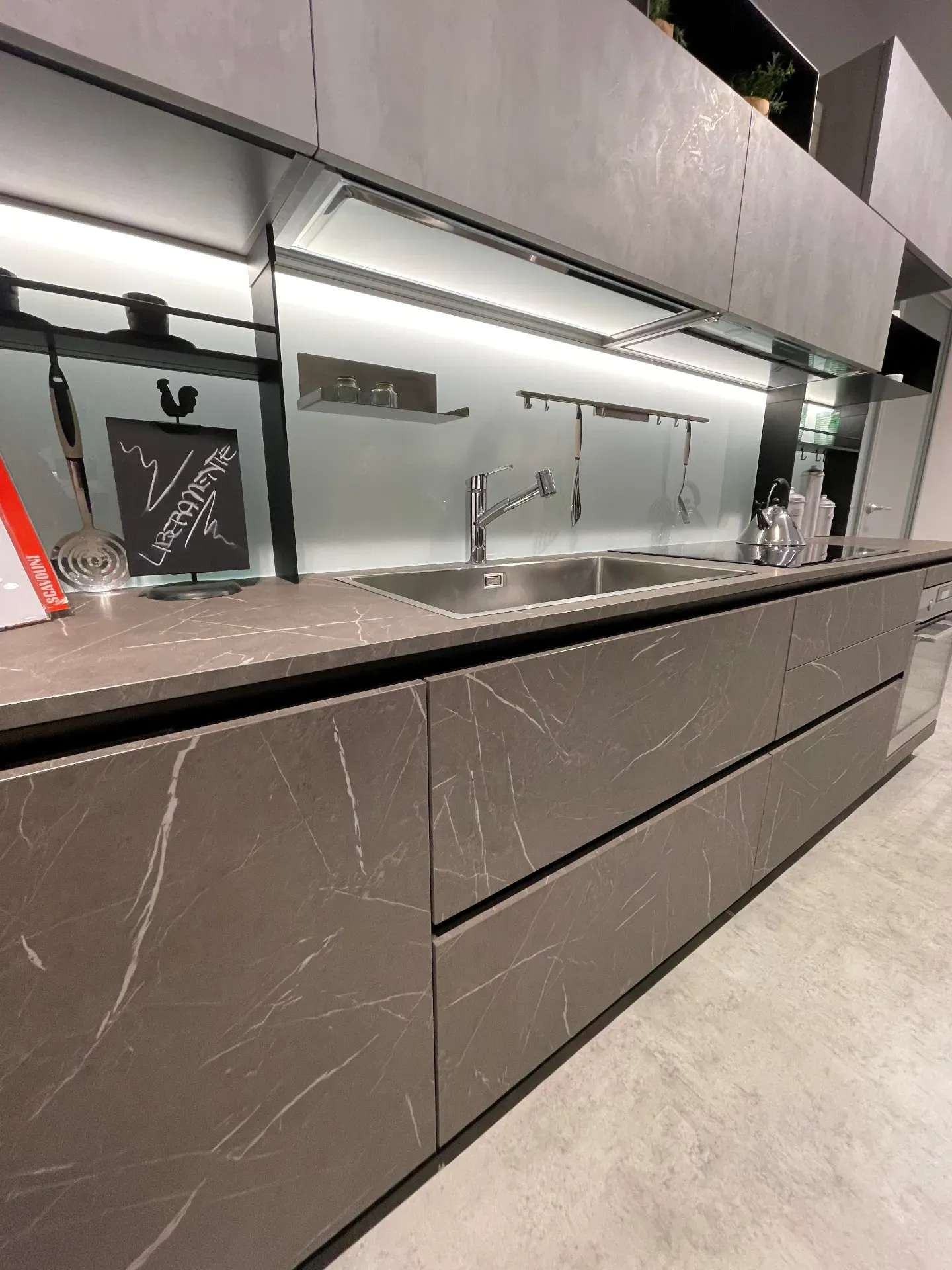 Il colore della cucina non è mai da prendere sotto gamba: se cerchi una composizione grigie, questo modello Liberamente nell'immagine sarà l'ideale.