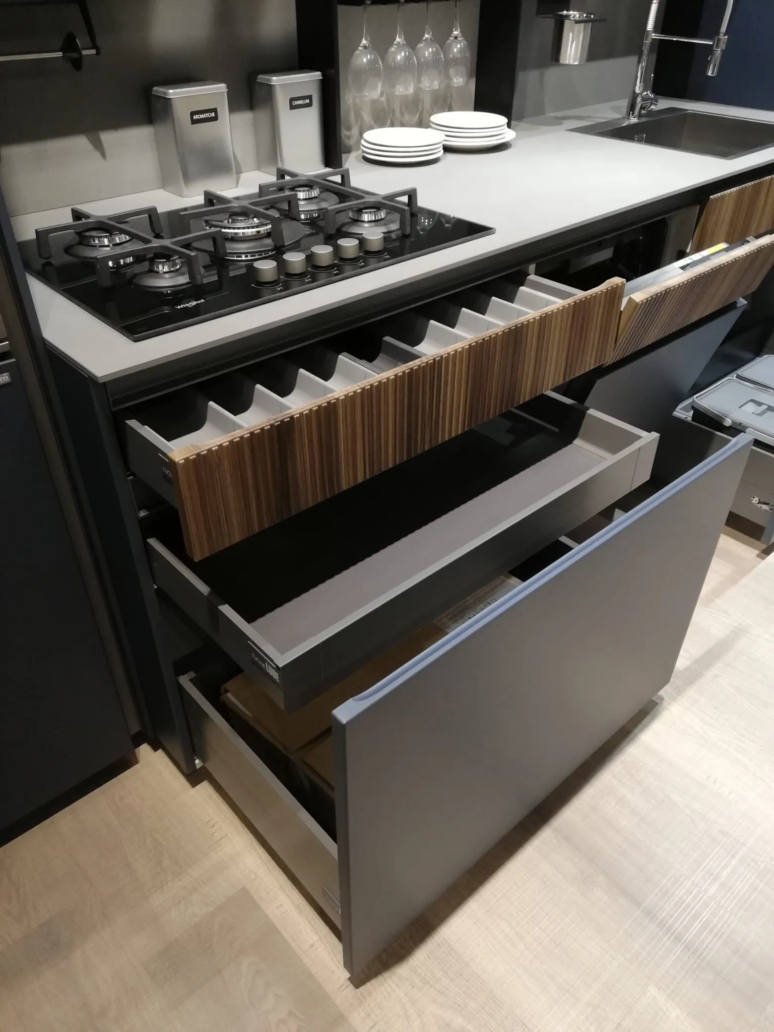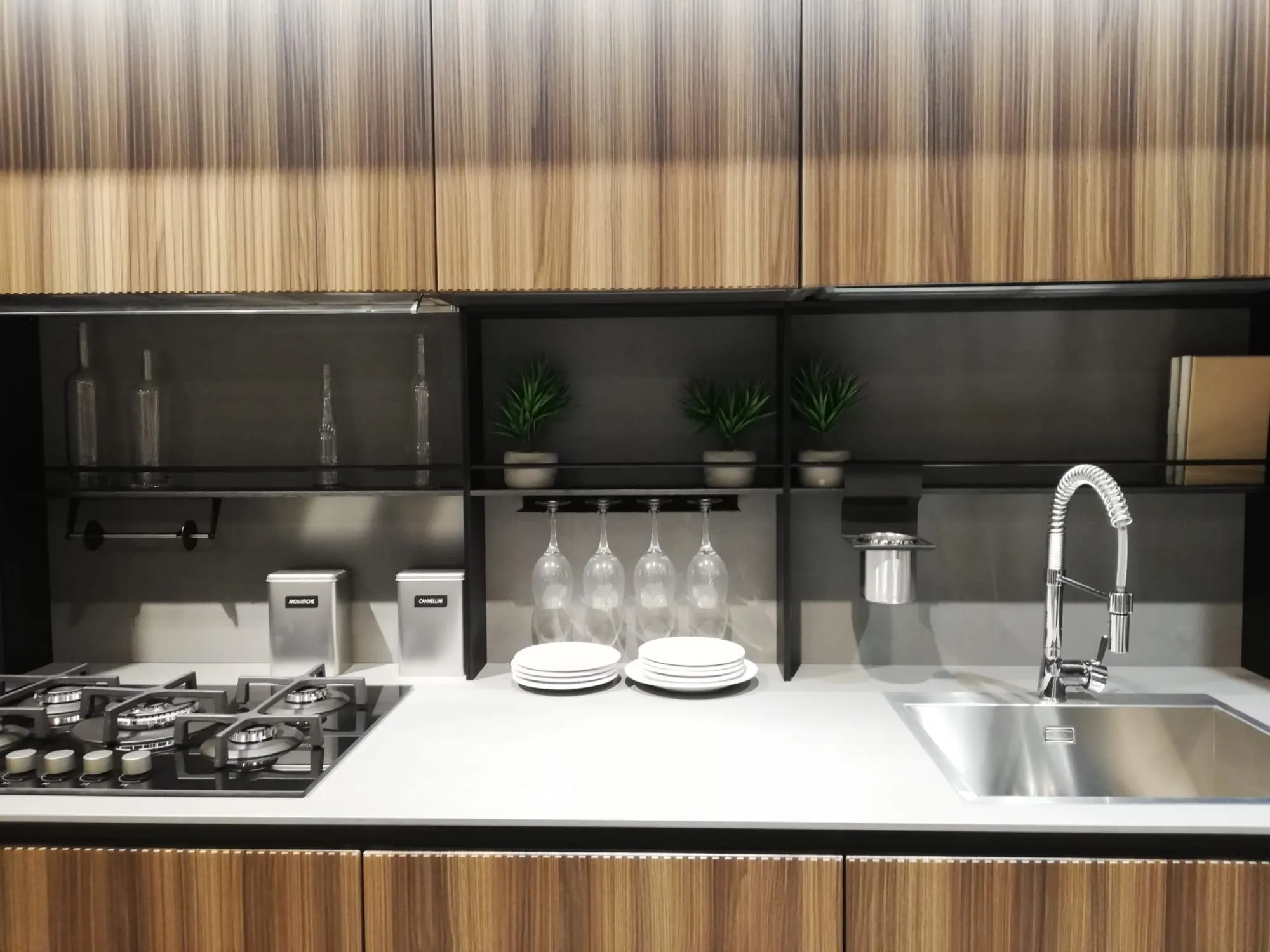 Questa cucina è attualmente disponibile in offerta speciale per rinnovo expo: un'opportunità imperdibile per trasformare il tuo spazio con una soluzione d'arredo che rispetta l'ambiente senza compromessi sul design.
