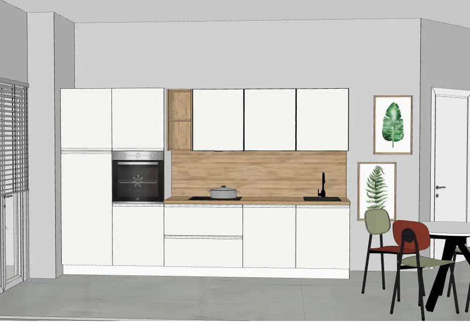 ESSENDO una promozione, la cucina può essere realizzata con colori a scelta e utilizzando i moduli dl disegno anche in altre posizioni, in base alle misure che il cliente ci fornisce.