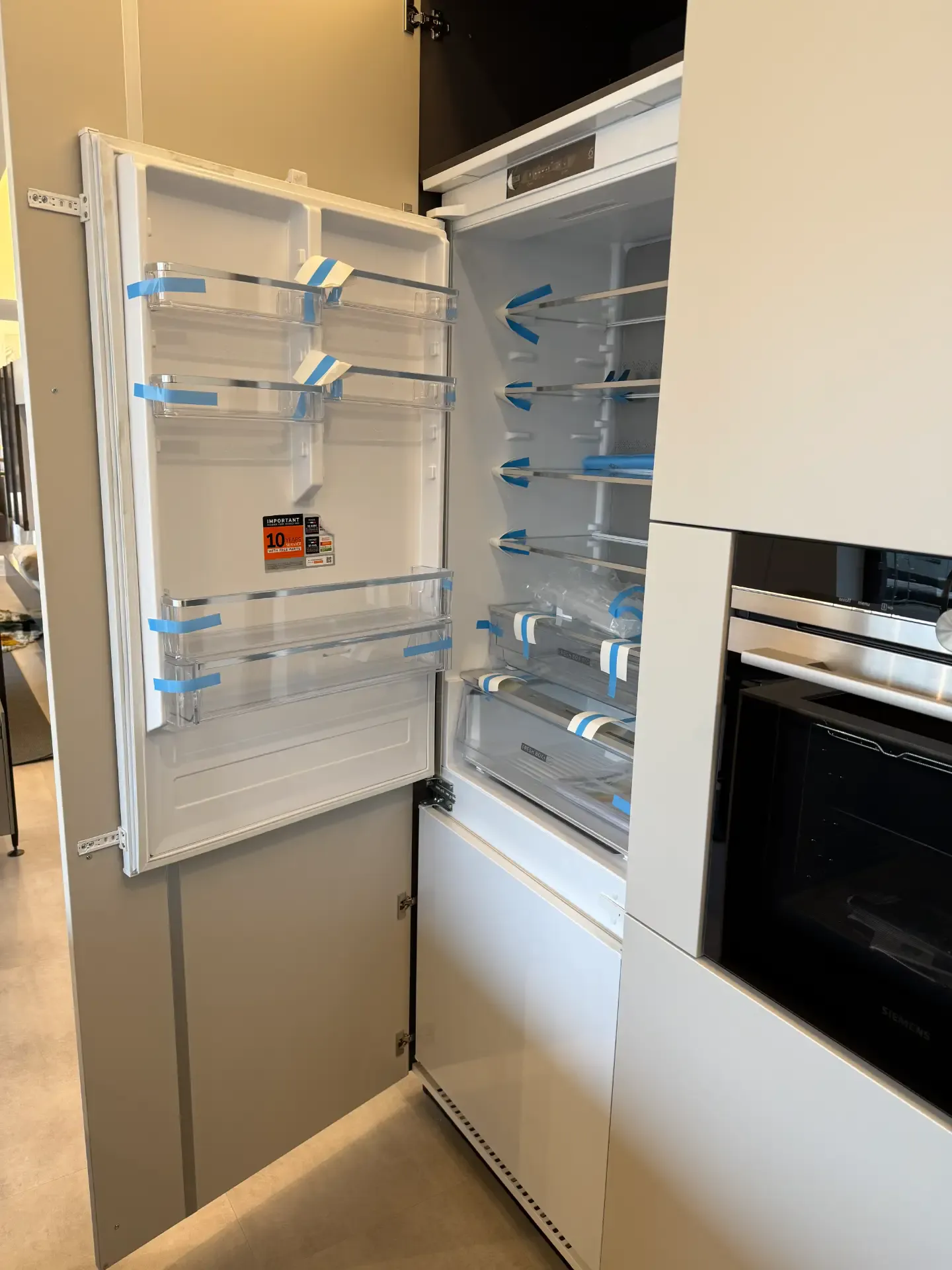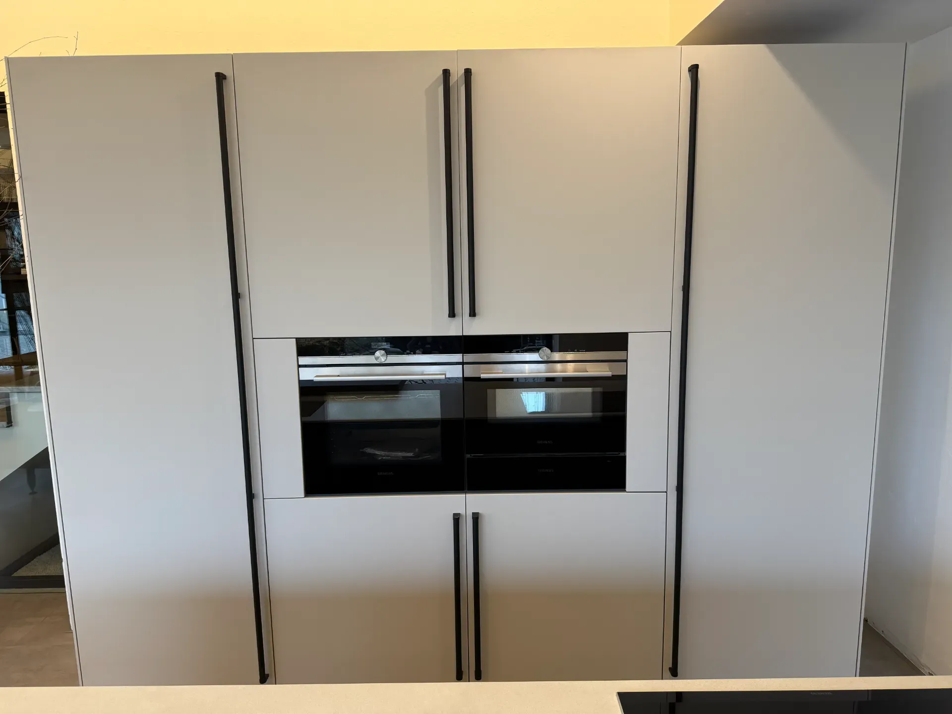 Il corpo colonne ( 4 da 75) è impreziosito da due ante da 15 apribili a push pull dove sono stati inseriti al suo interno un accessorio estraibile porta leccarde per il forno ed un accessorio estraibile sommelier.