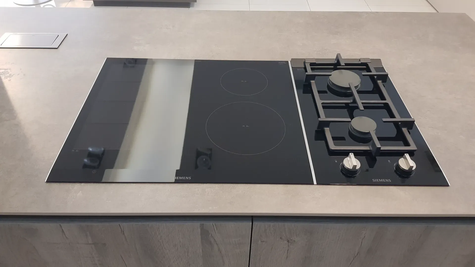 La cucina è dotata di piano cottura misto, linea domino Siemens, induzione e gas (2 fuochi).