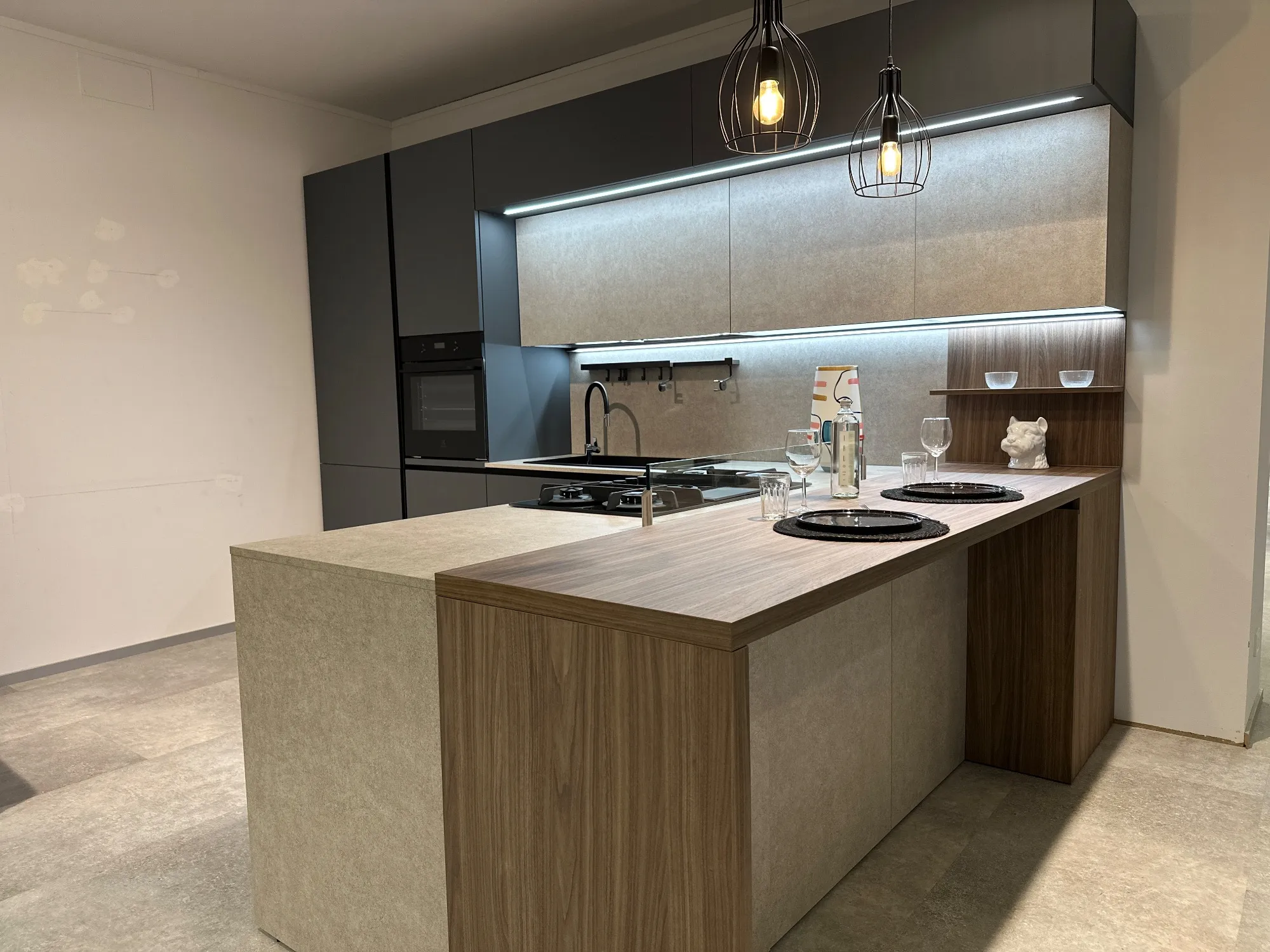 Cucina a prezzo ribassato con penisola moderna Infinity Stosa qui visibile è veramente bella e funzionale. Con uno sconto del