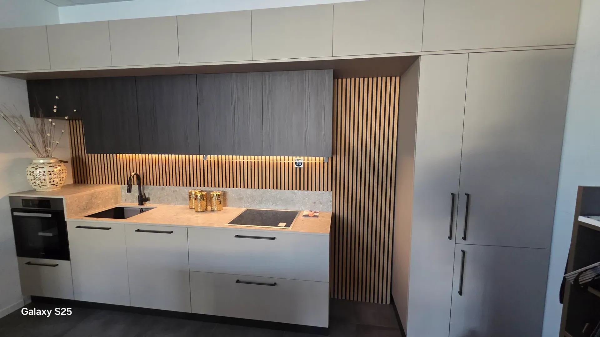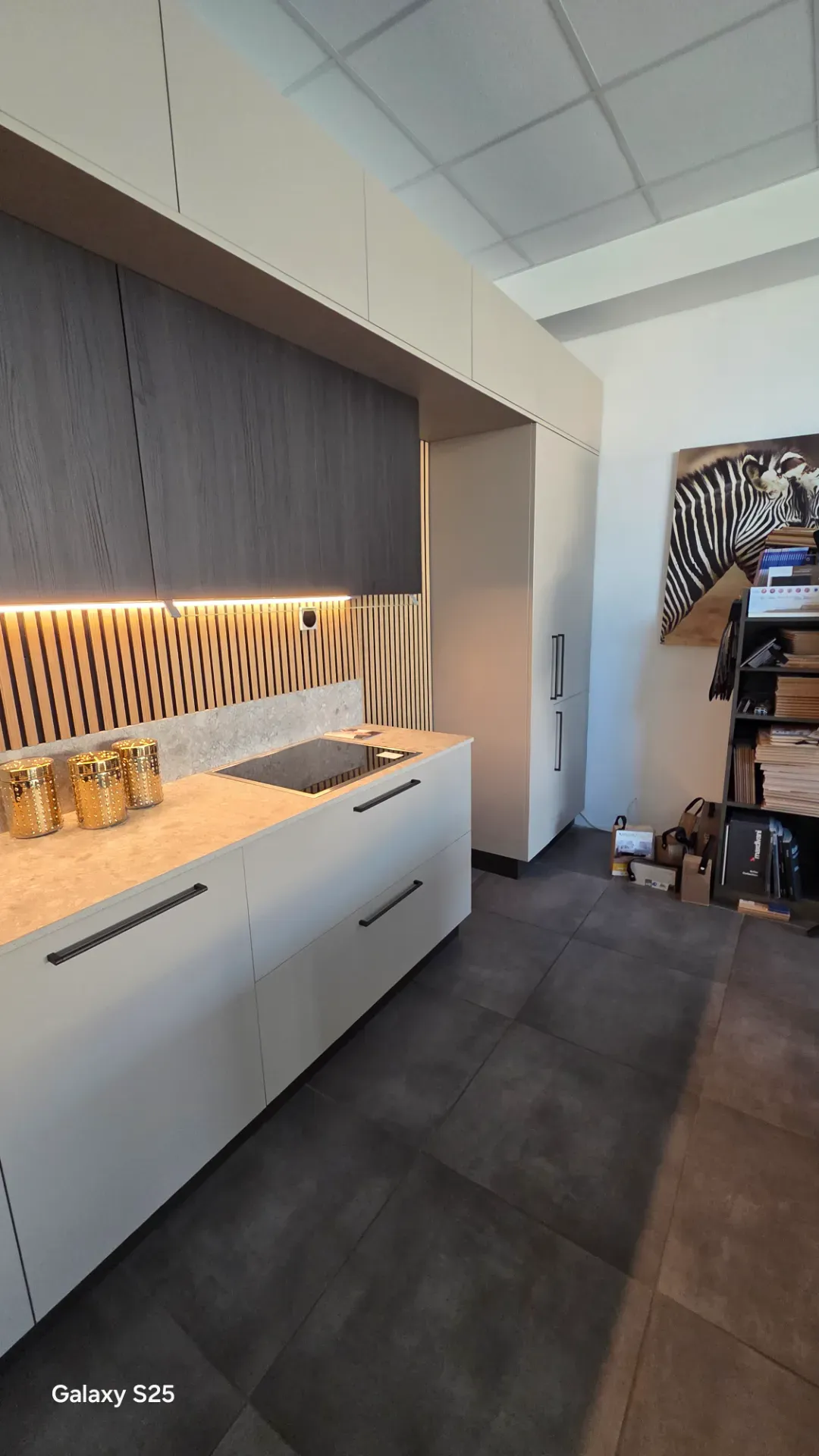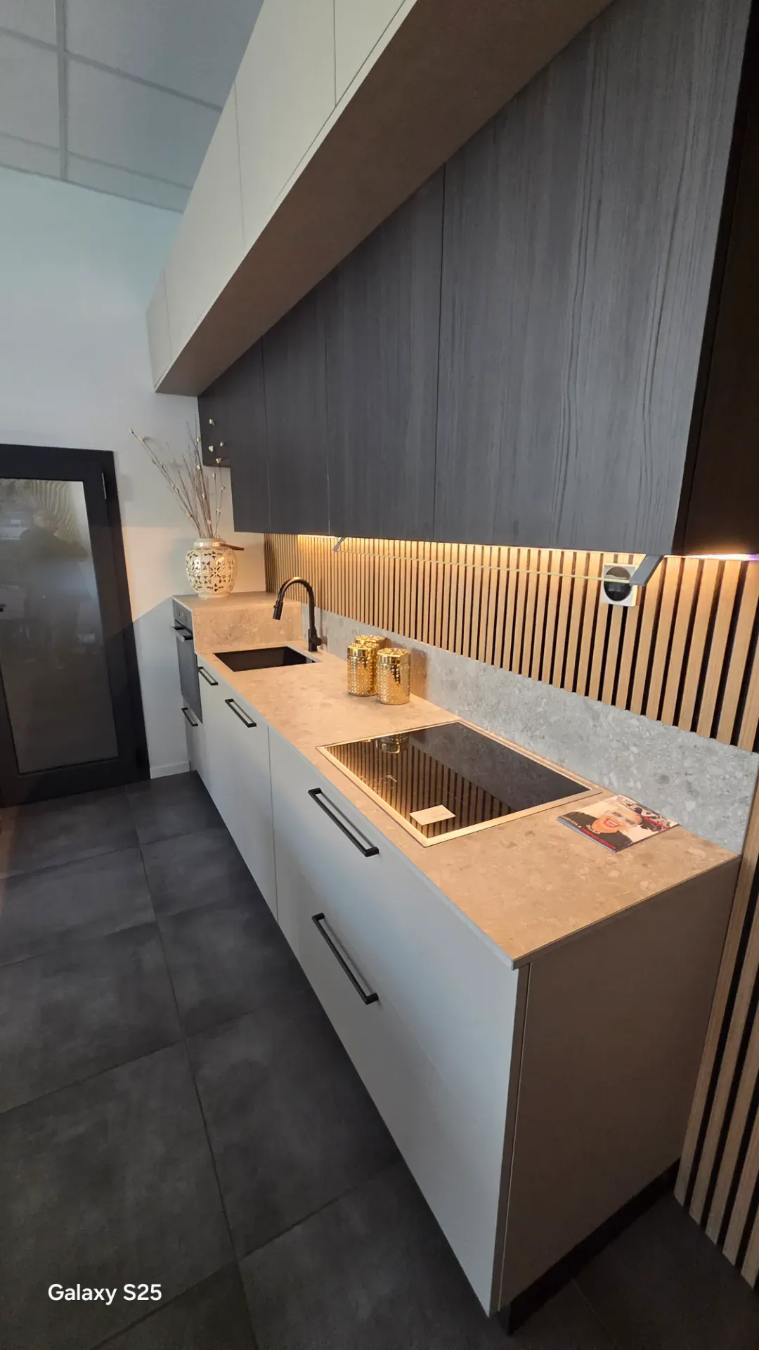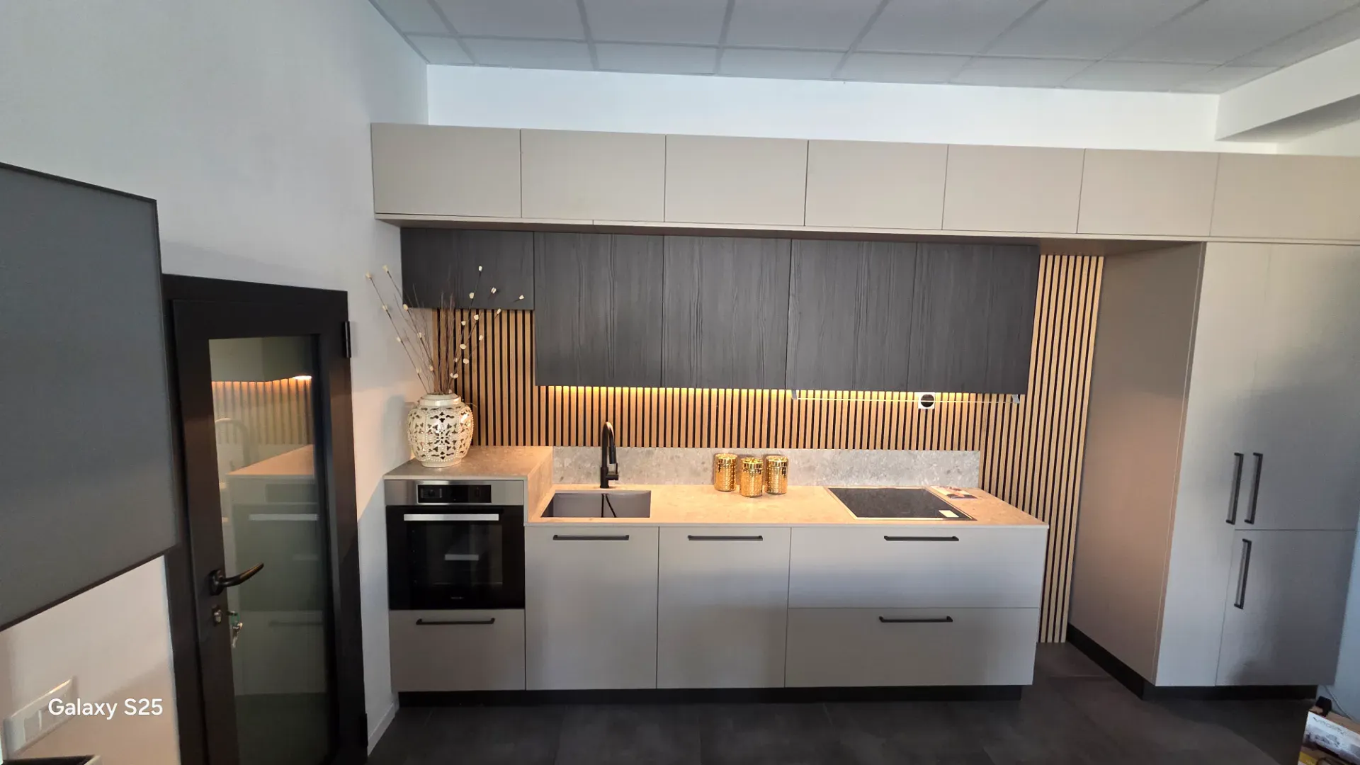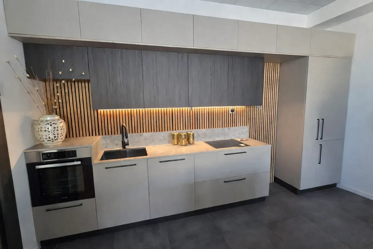 Proponiamo una soluzione cucina lineare di dimensioni 390 x 260 cm.