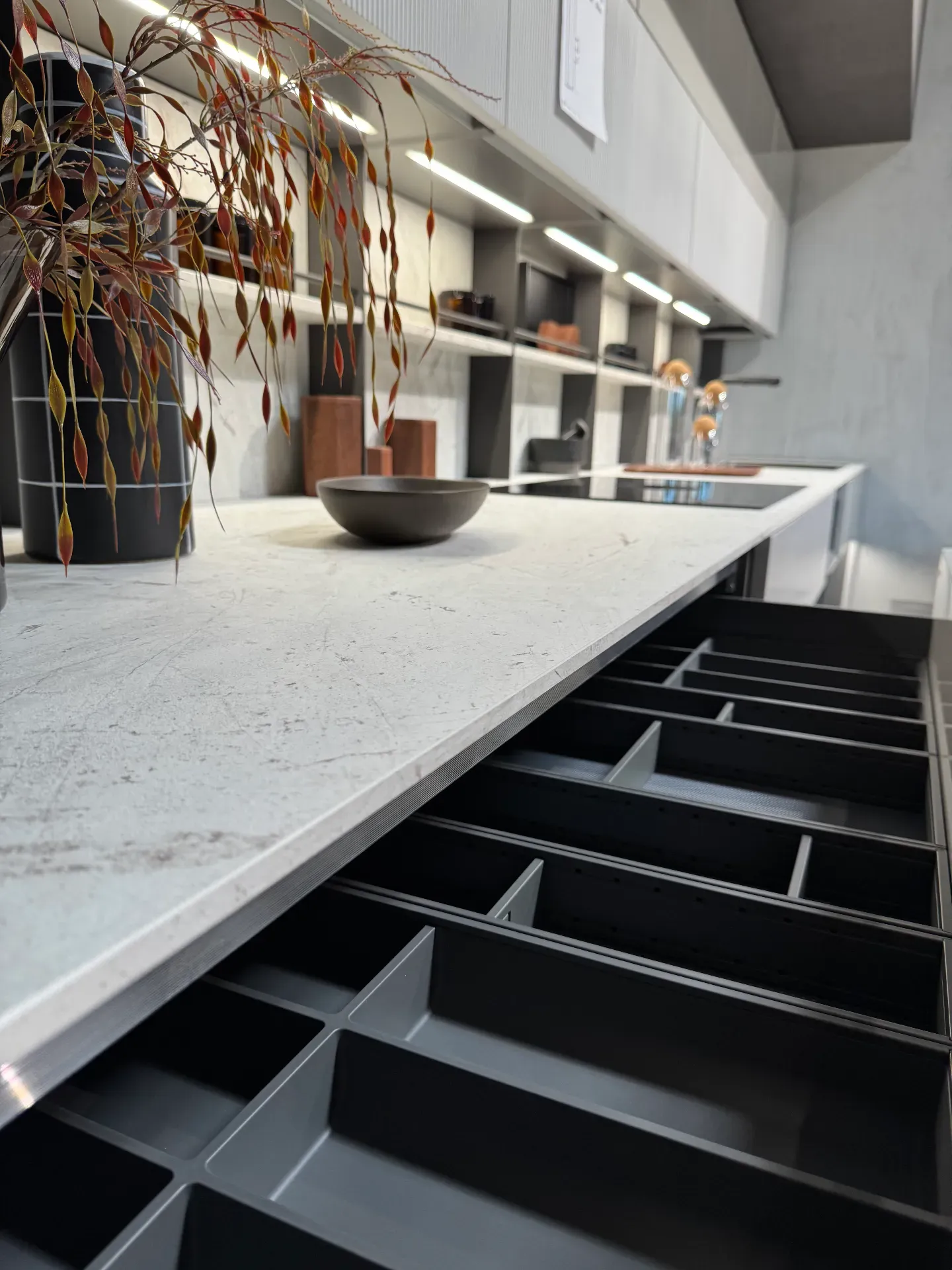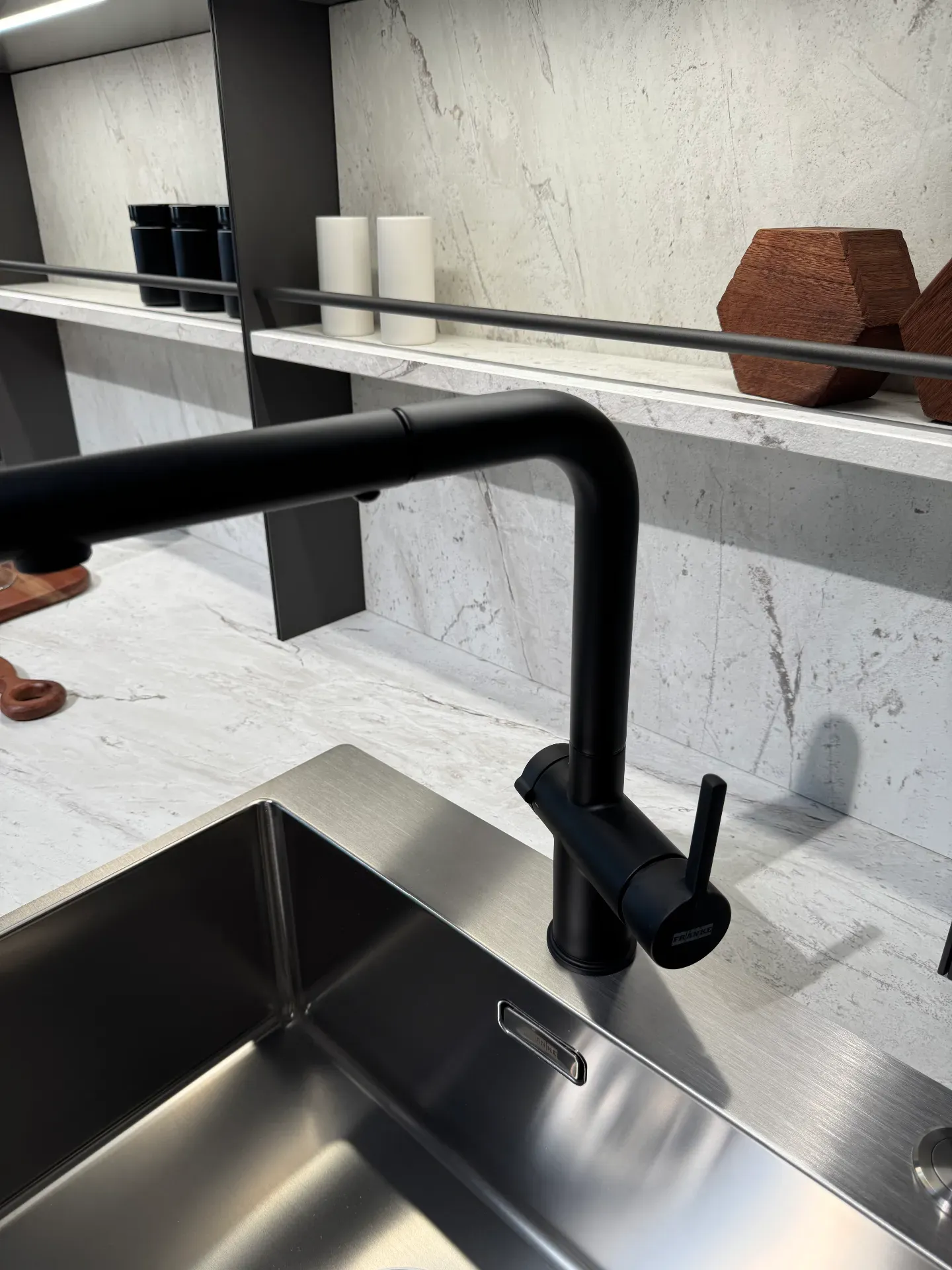 - È davvero peculiare il top cucina in HPL incluso nel costo Outlet, perfetto equilibrio tra le doti pratiche e quelle di design: resisterà dopo anni al uso prolungato, pur restando valido pure dal punto di vista dell'estetica.