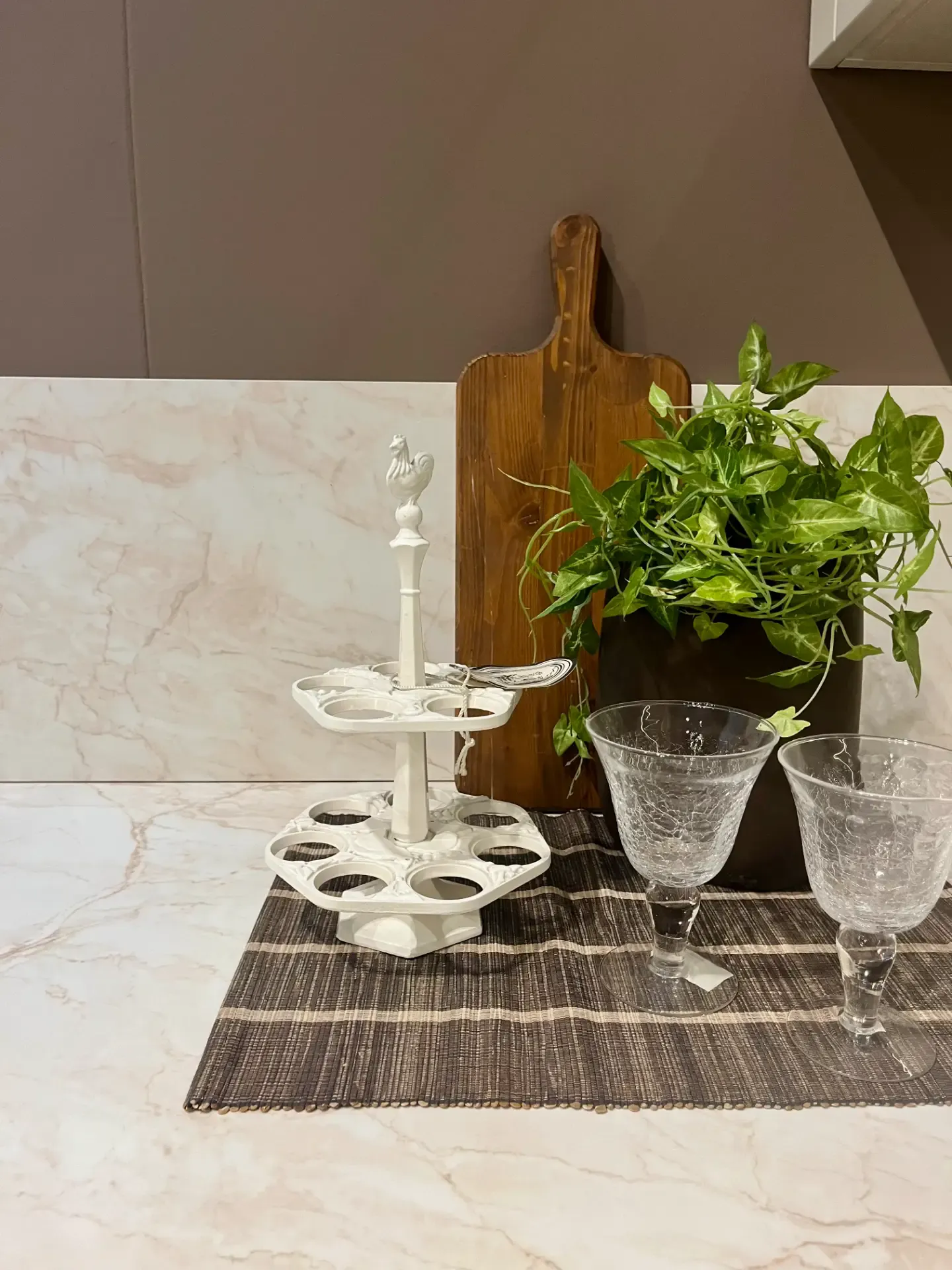 Il piano in laminato effetto Calacatta, con le sue venature delicate, aggiunge pregio e resistenza, donando un tocco contemporaneo e di grande impatto estetico.