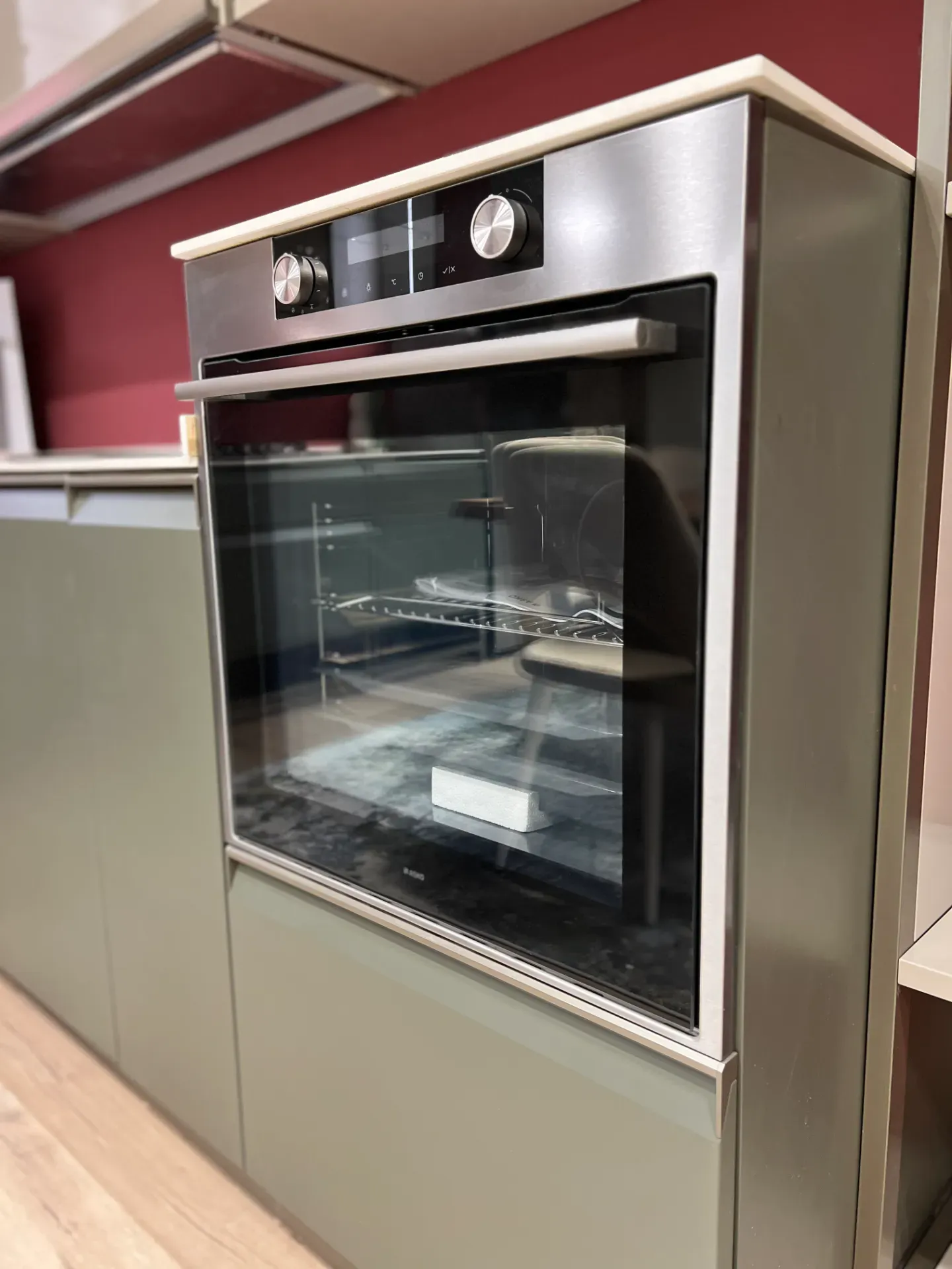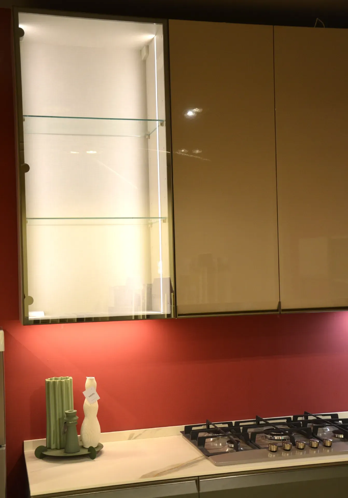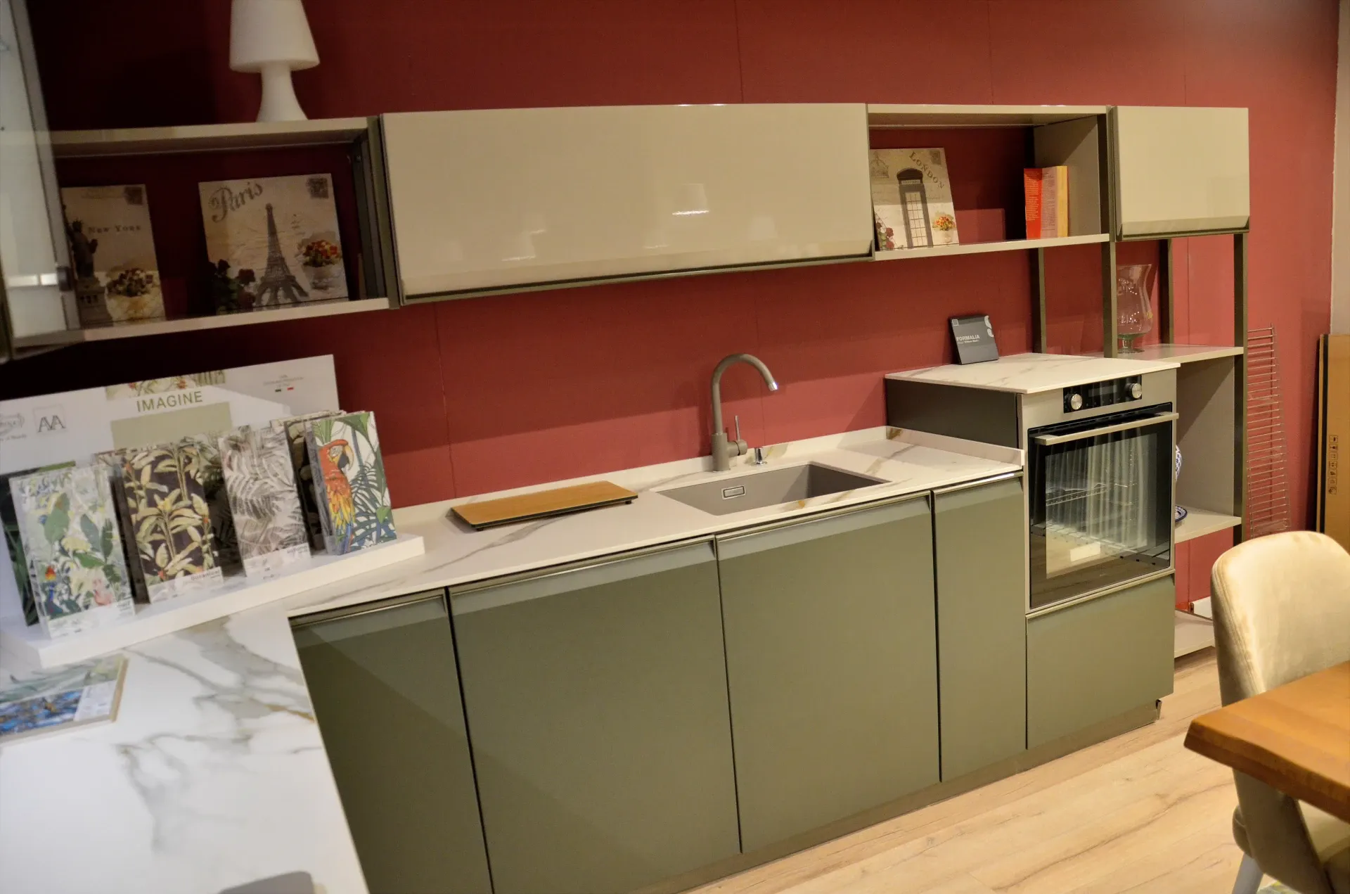 Il verde salvia crea un atmosfera calda e rilassante, impreziosita dal top in Calacatta Delicato che dona luce e raffinatezza all ambiente.