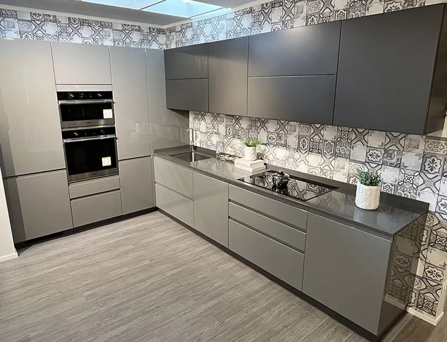 La cucina angolare modello Motus realizzata da Scavolini, uno dei brand più iconici nelle soluzioni di design per la cucina, esprime e pieno l'eleganza minimale di uno stile di arredo moderno e funzionale. Scavolini Motus, con elementi "indipendenti" aggregabili e scomponibili, rimodulabili anche nel tempo in ragione dello spazio e delle esigenze funzionali, evolve il concetto di cucina e living all'insegna della massima libertà creativa. La struttura si compone di tre colonne cucina con ante in antracite ed elettrodomestici da incasso, di una base ad ante e cassetti, di un cassettone modello Scavolini Blum Plus un'esclusiva soluzione di archiviazione ideata dal brand, di un ampio piano in finitura Gray Sand_Quarzo e di uno spazioso mobile sospeso con ante, ancora una volta in antracite. I segni particolari che caratterizzano in modo originale Motus Scavolini sono l'apertura delle ante senza maniglia, la singolare rilettura dell'anta a vetro e la geometria del cassetto sagomato. La cucina Scavolini angolare renderà speciale ogni tipo di esperienza culinaria grazie alla sua funzionalità dinamica alle sue finiture pregiate, ma semplici allo stesso tempo. In questa proposta inedita a sorprendere non sono le linee inusuali, ma un design essenziale ed elegante con dettagli che raccontano la nuova identità dell'ambiente nel quale oggi si opera e si vive.