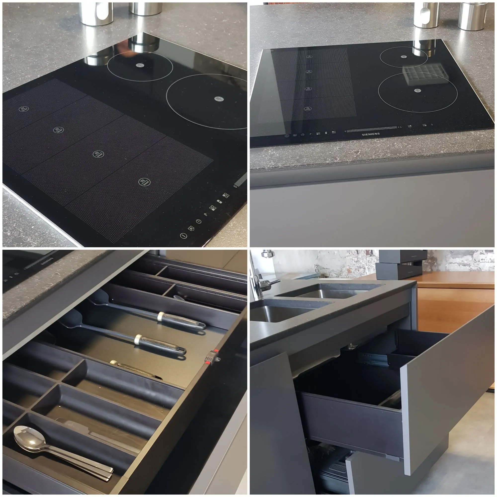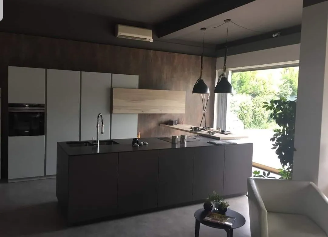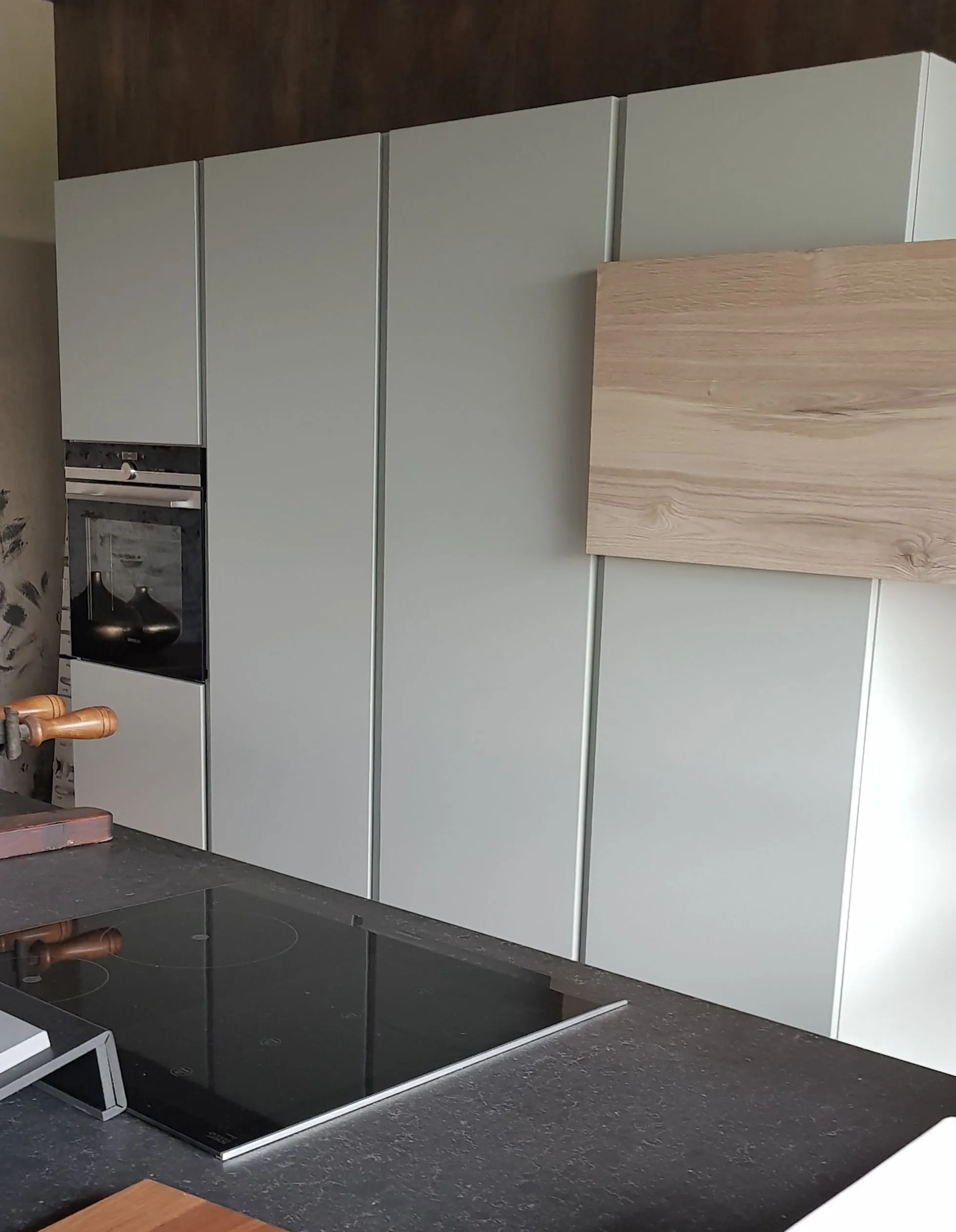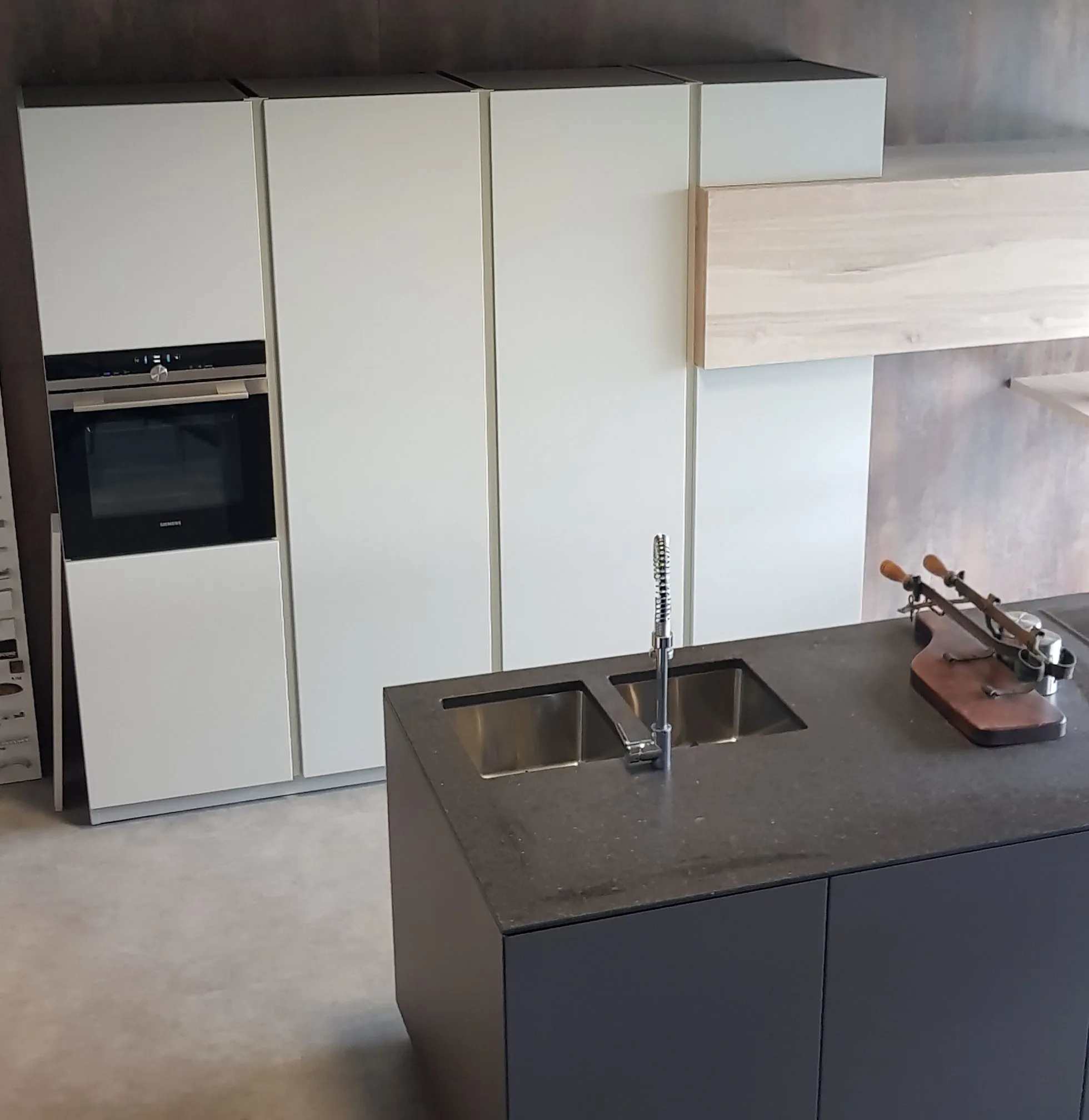 Prezzo imbattibile cucina Urban interprete di uno stile metropolitano presenta una soluzione compositiva giovane e disinvolta personalizzando la cucina attraverso l’unicolor dei piani. Dimensione parete colonne e pensile a ribalta 370 cm Tavolo in Hpc finitura quercia L 240 P 70 H 96 Isola L 305 P 105 H 92 Top in agglomerato di quarzo colore Belgian Blue Velvet Le basi frontali con cassettoni estraibili ammortizzati finitura laccato grigio ghisa. Le basi esterne con ante apertura push pull finitura laccato grigio ghisa. Le colonne Forno, Frigo e Dispensa sono in finitura lacccato bianco. Tavolo e pensile in HPL finitura quercia. Frigorifero e Cappa disponibili a richiesta. Per maggiori informazioni non esitate a contattarci. IN PRONTA CONSEGNA Clicca su Armonie d'Interni nella colonna a destra per vedere tutte le nostre proposte di arredo