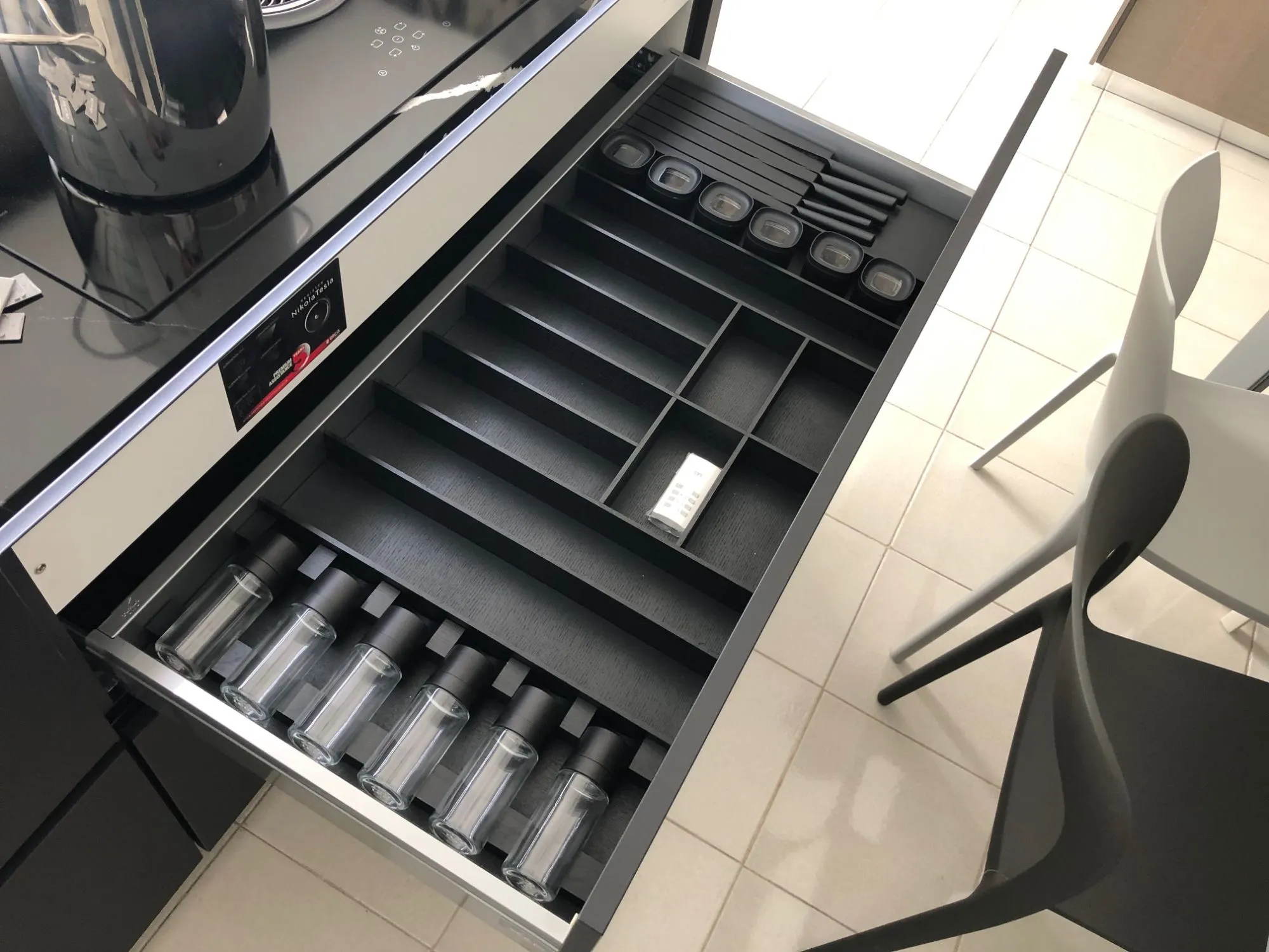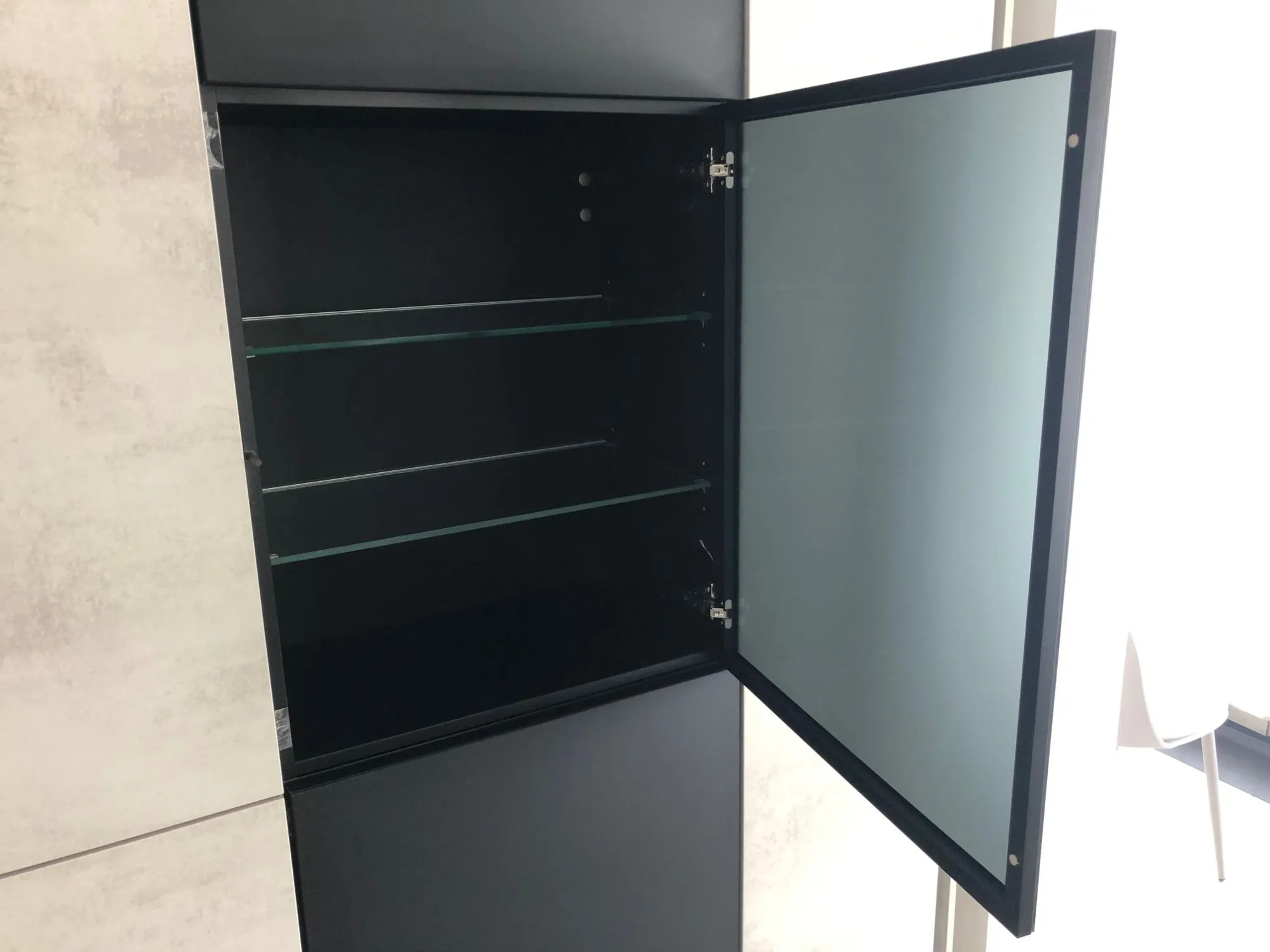Descrizione: Scocca realizzata con pannelli bordati in ABS sp. mm 1. Schiene in MDF. Le chiusure di ante e cassetti HETTICH sono dotate di sistemi di rallentamento e sgancio rapido. La base cottura θ accessoriata con contenitori, coltelli e divisori. La base lavello θ accessoriata con pattumiere differenziate e scopina. Alcune basi con ante sono dotate di cassetti interni attrezzati. Le colonne dispensa sono dotate di carrello estraibile e serie di cassetti. Nel top θ inserita una multipresa a scomparsa ed θ completato da un piano snack in rovere massello invecchiato. Ante: Pannelli in spessore in melaminico antimpronta in finitura nero e cemento, gole in alluminio finitura nero. Top: In quarzo SILESTONE finitura Eternal MARQUINA. Piano cottura: ELICA NikolaTesla. Forno: BOSCH HBG675BB1. Forno a microonde: BOSCH BFL524MS0. Lavastoviglie: BOSCH SMH4HCX48E. Lavello: ELLECI 87689 con accessori. Miscelatore GESSI 17837. Frigorifero: BOSCH KIN86AFF0. Pantry BOX: per la conservazione dei cibi. Luci LED: le GOLE ed i ripiani degli elementi con anta in vetro i illuminano. Personalizzazioni: La cucina puς essere ricomposta in varie altre composizioni spostando la posizione dei vari elementi. E' possibile modificare il piano di lavoro che puς essere tagliato. Se necessario θ possibile fare modifiche ed ordinare nuovi elementi per integrare la composizione proposta. Offriamo GRATUITAMENTE il servizio di riprogettazione in base alle misure dell'ambiente dove la cucina andrΰ rimontata.