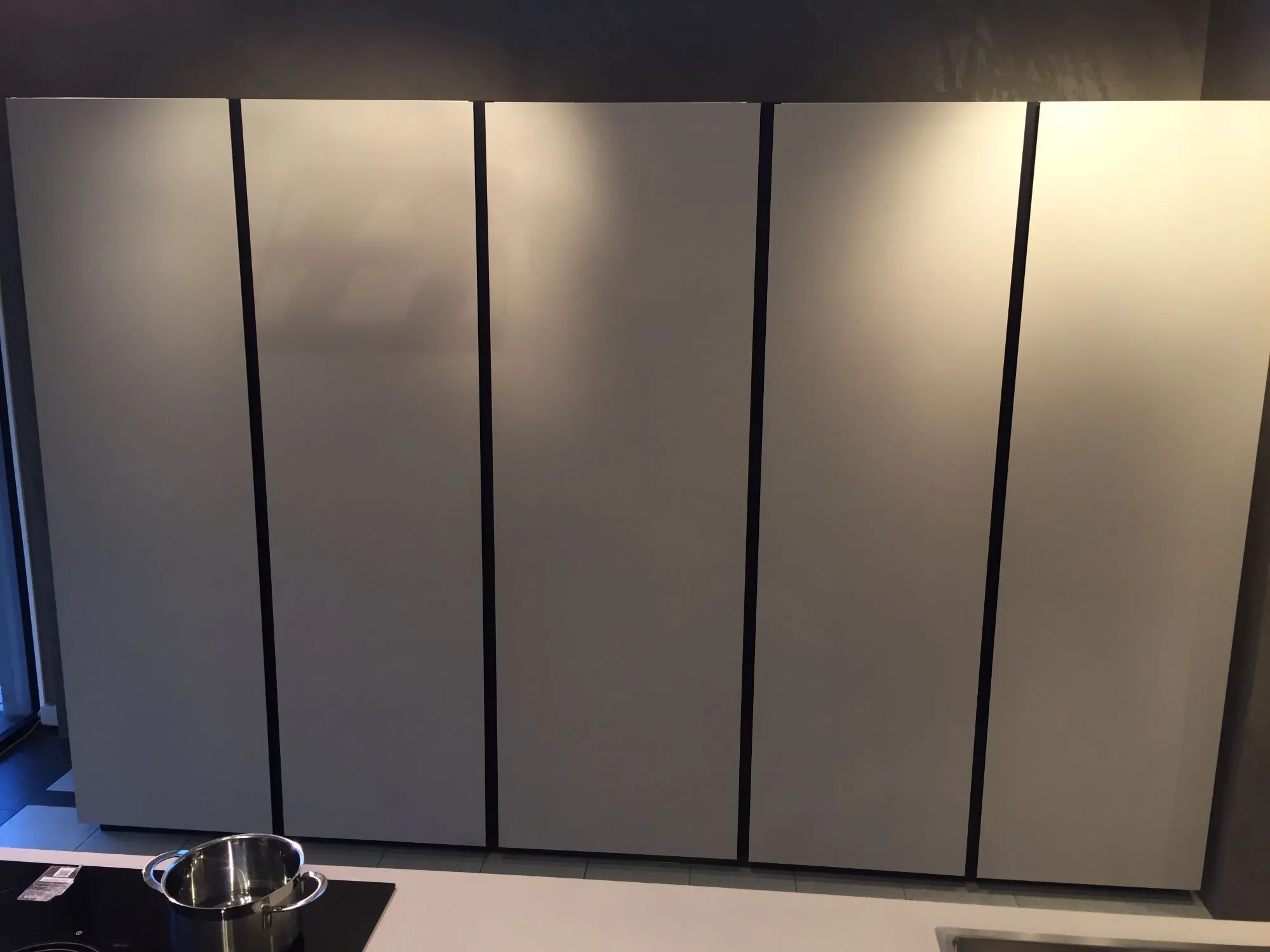 Anta lavastoviglie presenta la gola a metà del frontale garantendo la continuità della gola stessa lungo il perimetro dell'isola;