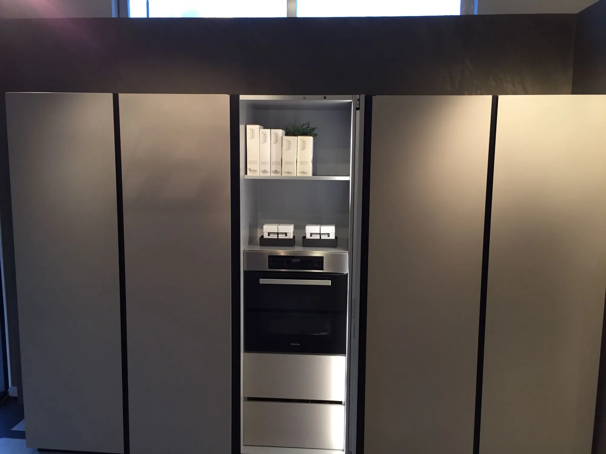 Colonna forno con anta rientrante e illuminazione interna(questa soluzione consente di chiudere completamente alla vista tutti gli elettrodomestici);