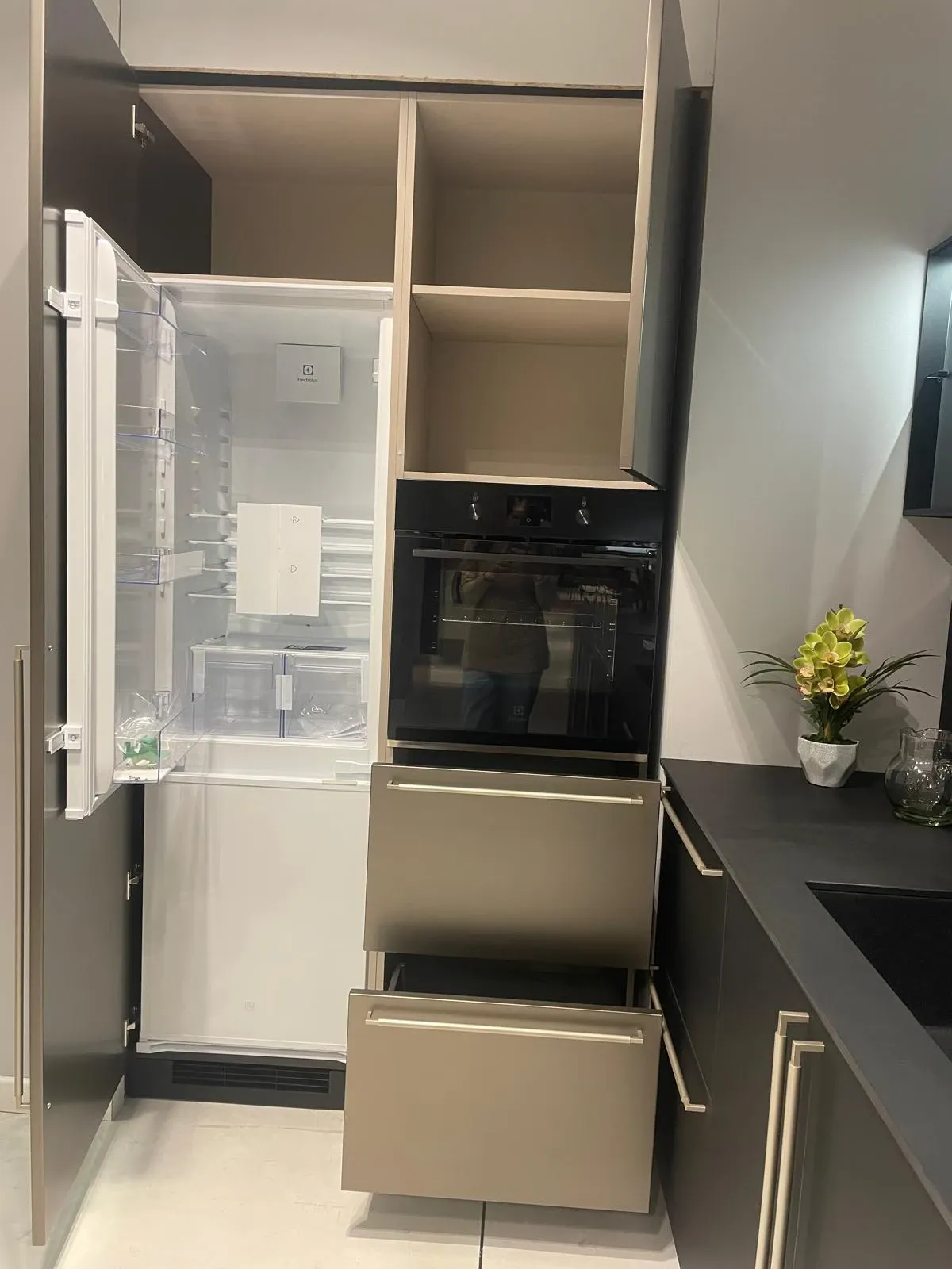 Per questa cucina Musa Design abbiamo pensato ad un frigorifero ad Incasso, ideale per conservare tutti i giorni le pietanze e le vivande, con riguardo verso consumi energetici bassi e rumore ridotto.