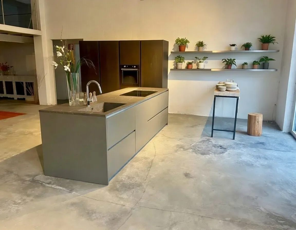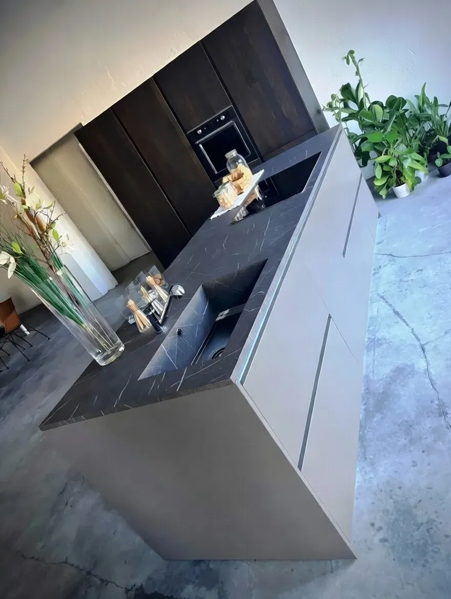 BLOCCO ISOLA: ante in finitura laccato satinato FOKOS PIOMBO