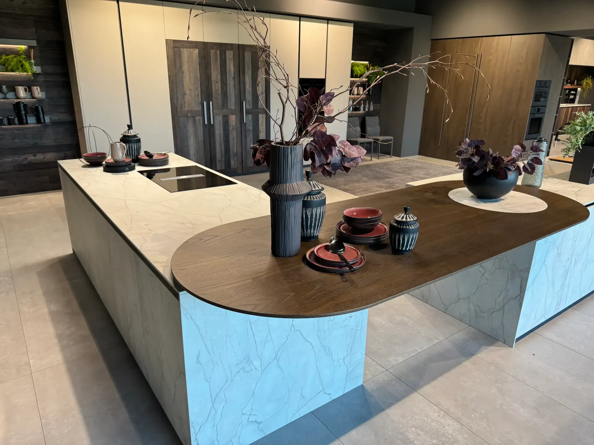 OCCASIONE UNICA!!! Cucina da favola di altissimo pregio con ben due isole, completa con elettrodomestici Miele professionali e attrezzatissima. Bancone in legno. Ante in laminato HPL. Possibilità di modifiche in base alle esigenze con progettazione gratuita esenza impegno.