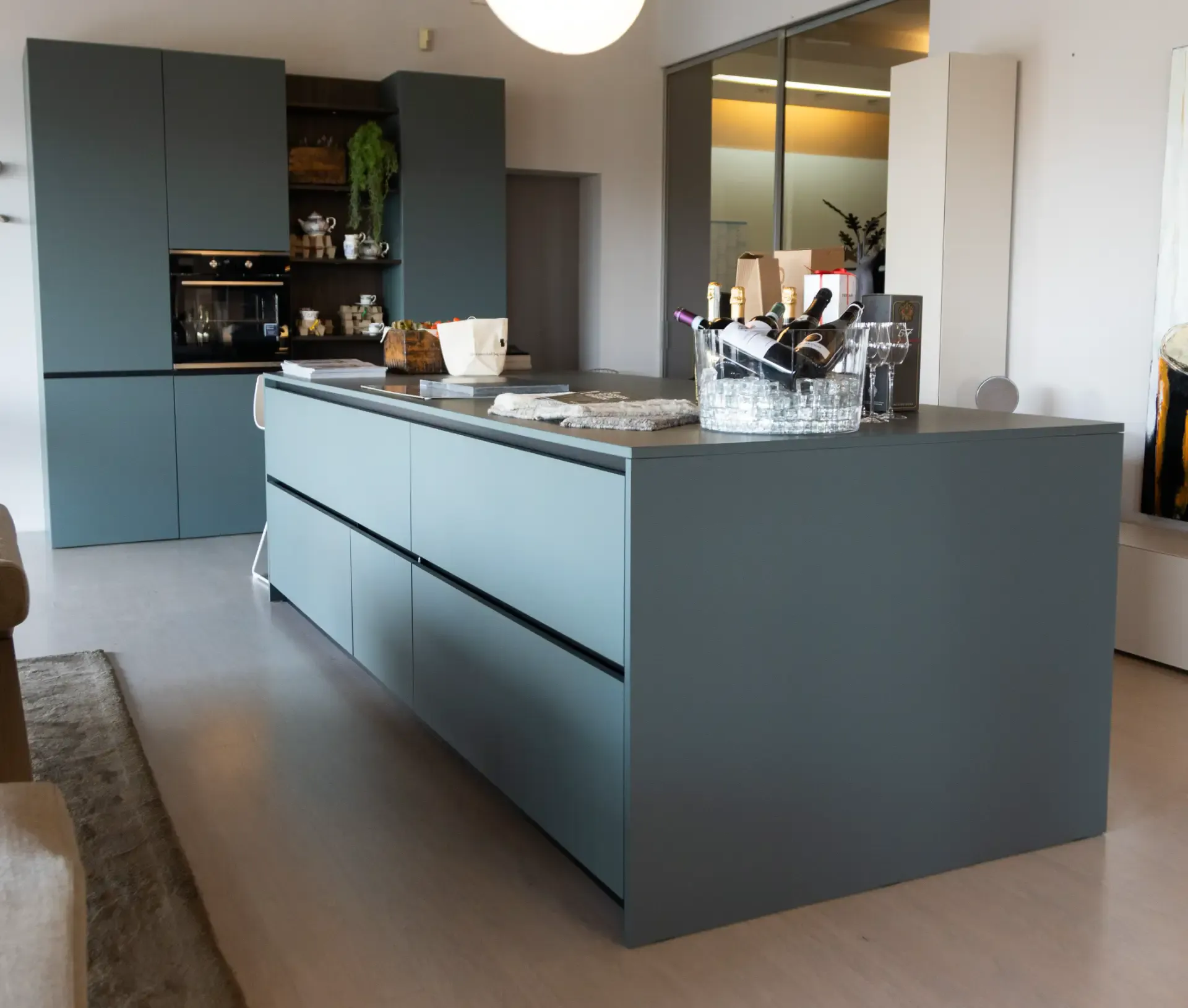 La cucina Cucina in fenix verde commodoro altri colori è ora in Offerta Outlet, insieme a tutta l'eccellenza che Record cucine ti assicura.