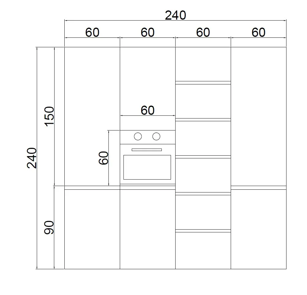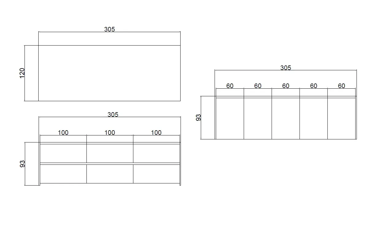 Isola L. 305 cm x P. 120 cm H. 93 cm