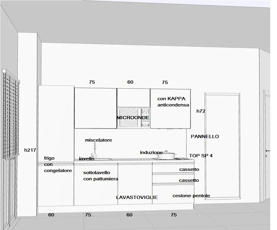 gli elementi della cucina POSSONO essere spostati in base agli impianti del cliente