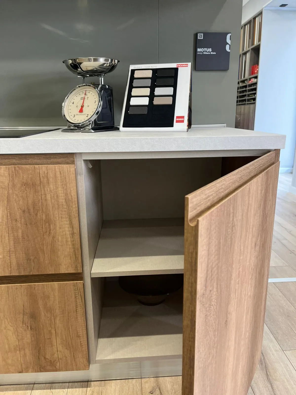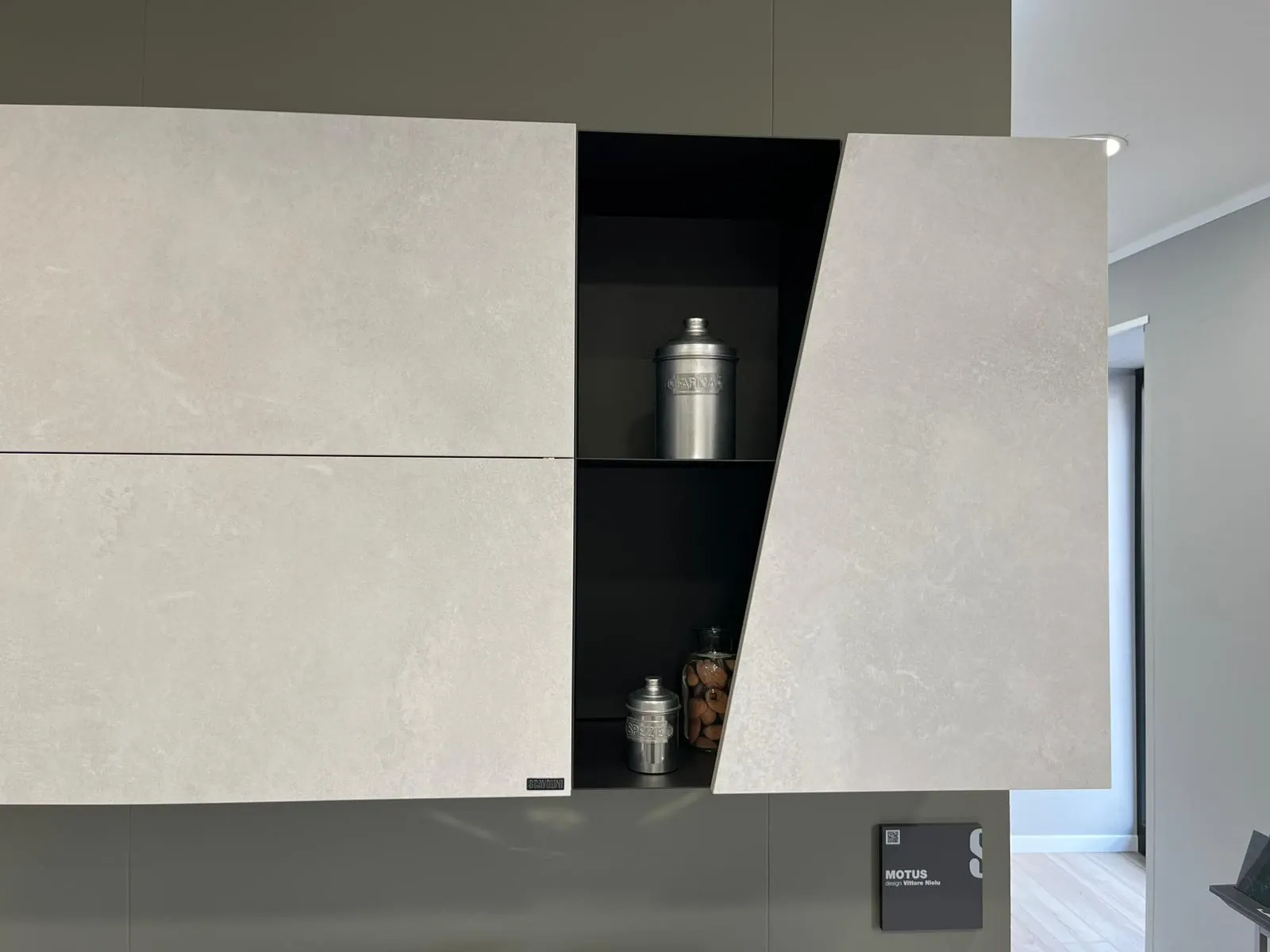 Motus, sono ideali per creare mood di fascino ed accoglienza. Scavolini ha scelto di realizzare in laminato materico la cucina