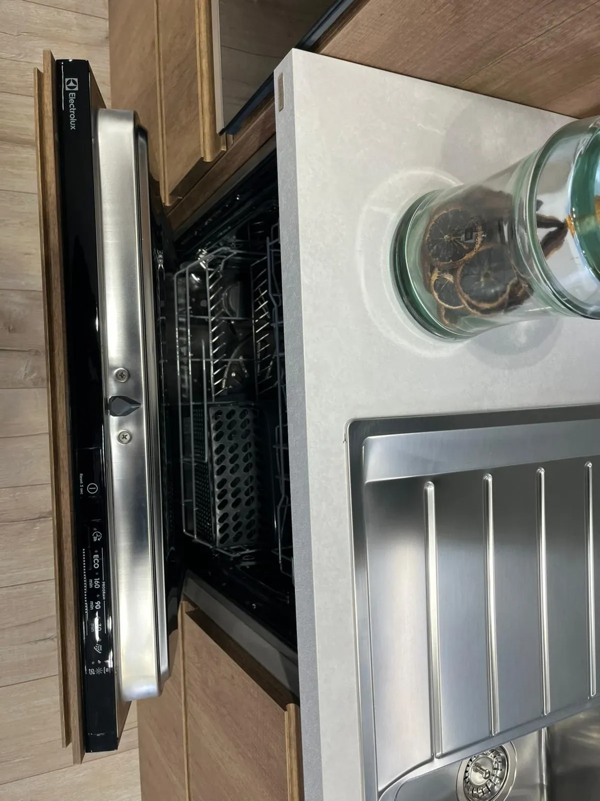 - La lavastoviglie, come questa con comandi a scomparsa, è necessaria in qualsiasi cucina per agevolare le consuete pratiche di pulizia della stoviglieria.