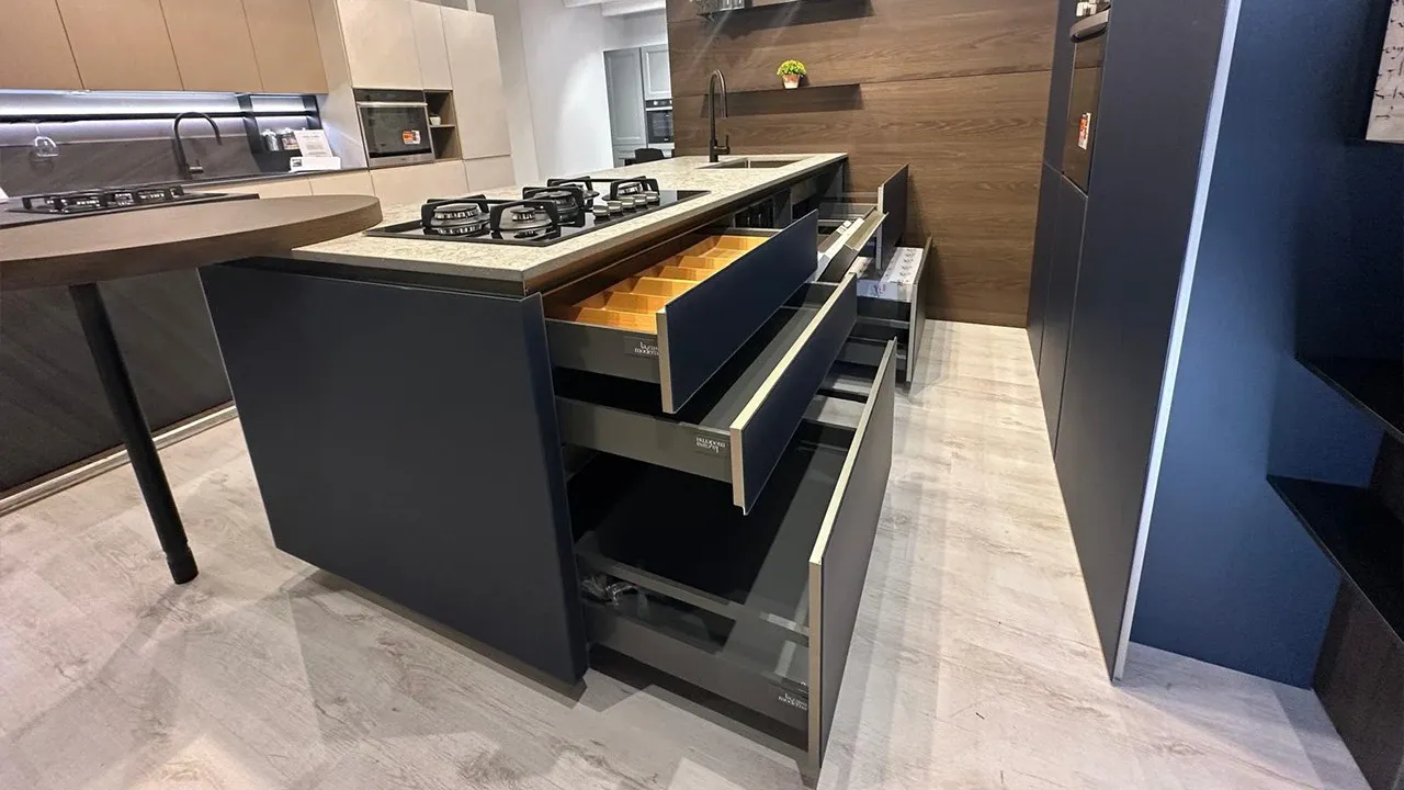 Scegli questo modello, la sua configurazione con isola saprà ricreare una cucina del tutto confortevole, dove sentirti a tuo agio quotidianamente.